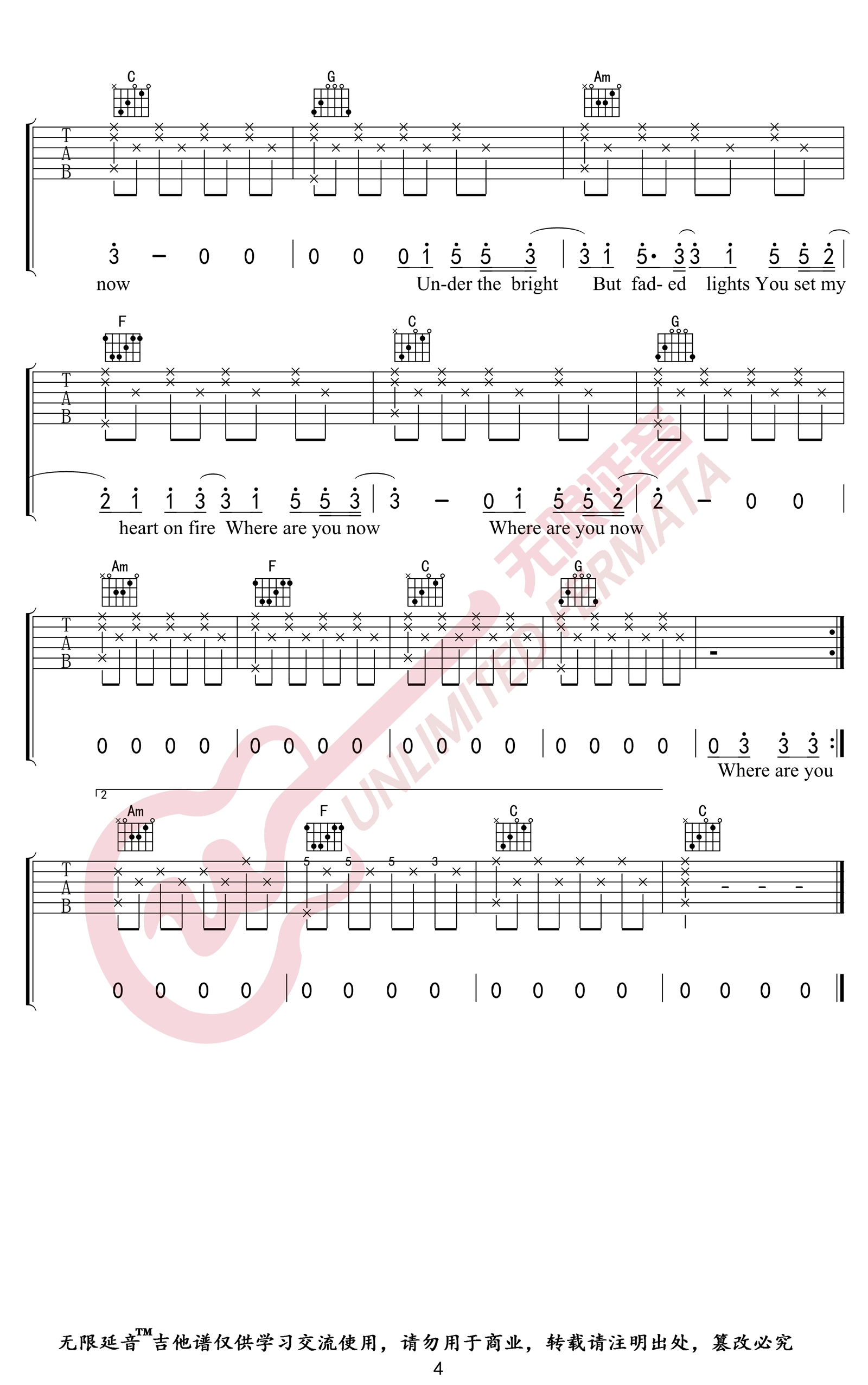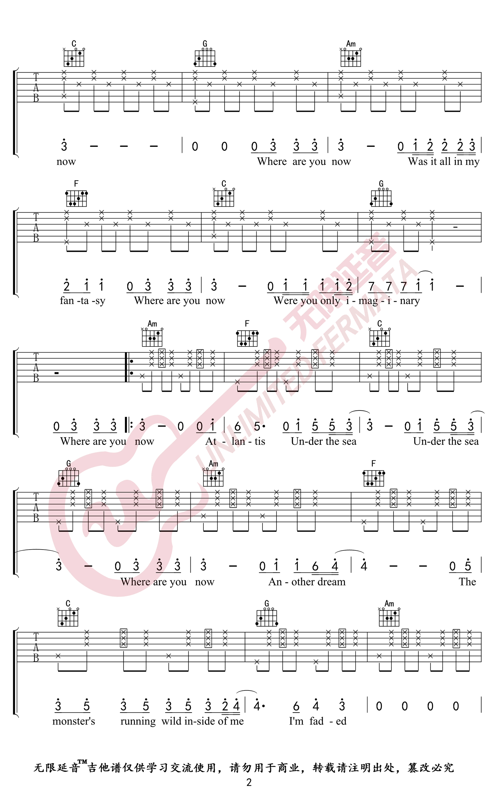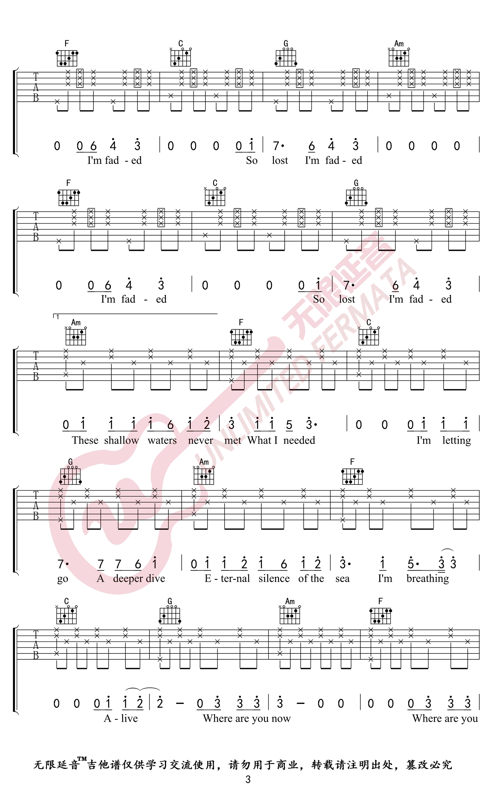 - Faded吉他谱_Alan Walker_C调_弹唱六线谱