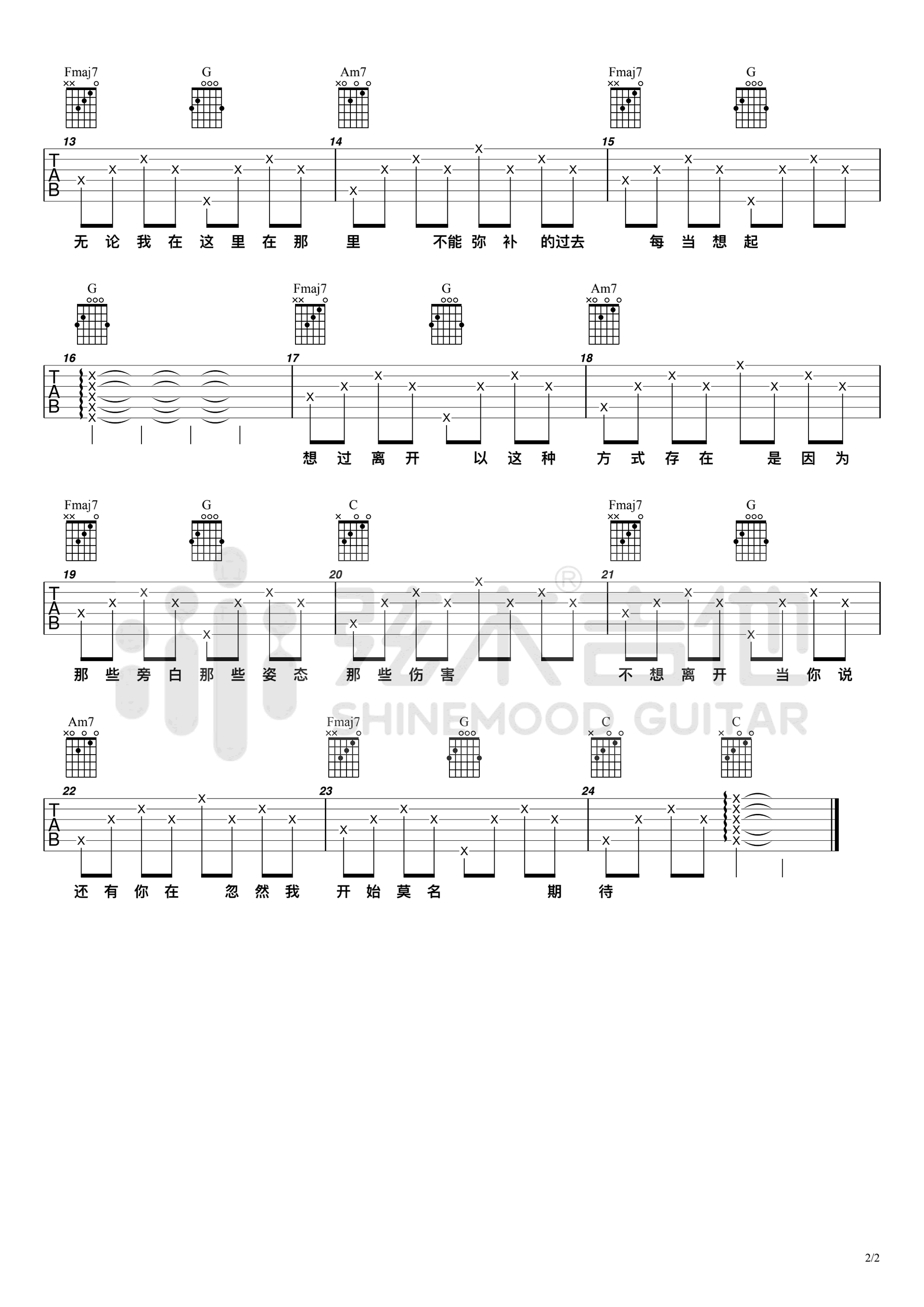 - 少年吉他谱_梦然_C调指法_弹唱六线谱_高清版