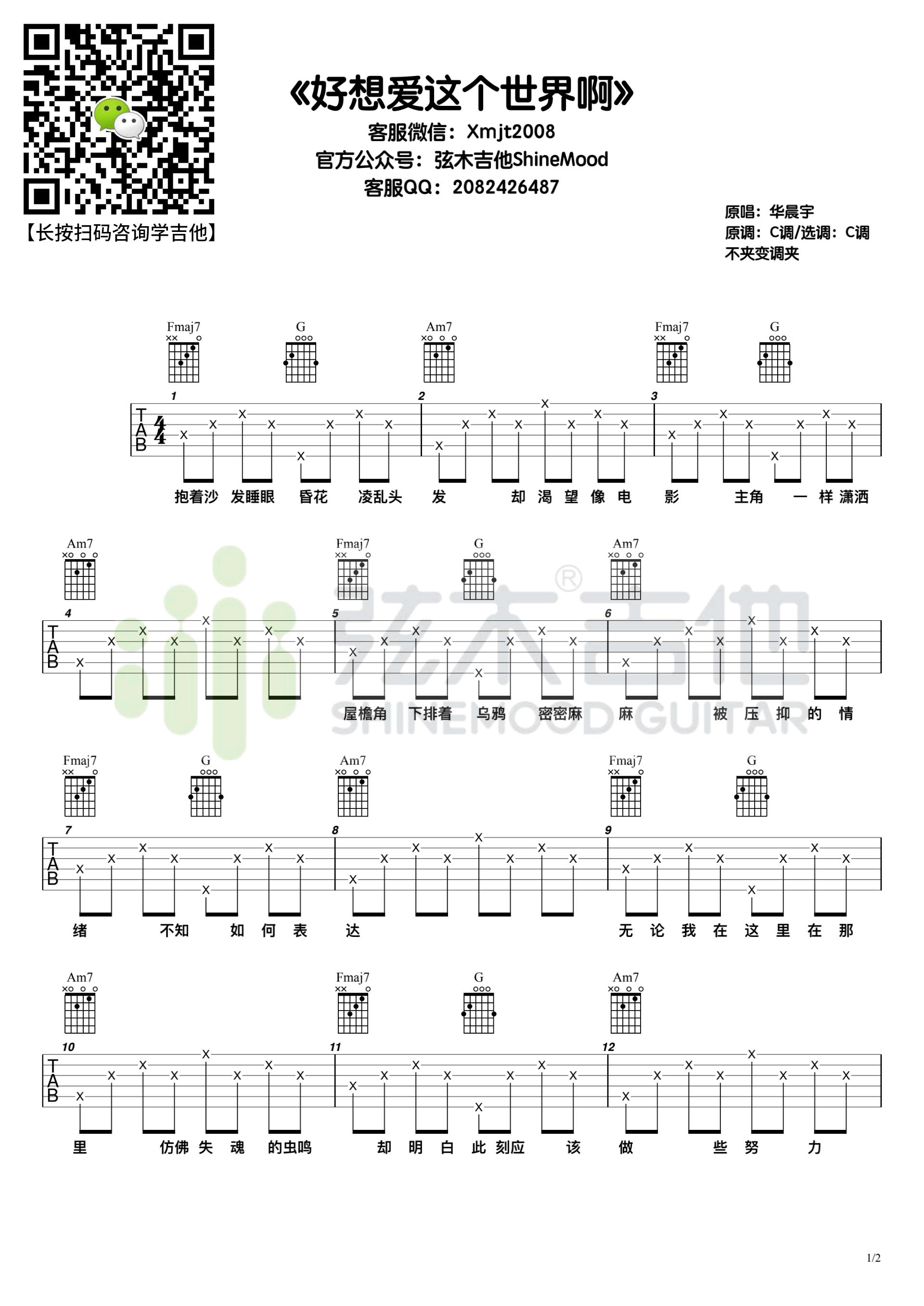 - 好想爱这个世界啊吉他谱_华晨宇_C调弹唱谱