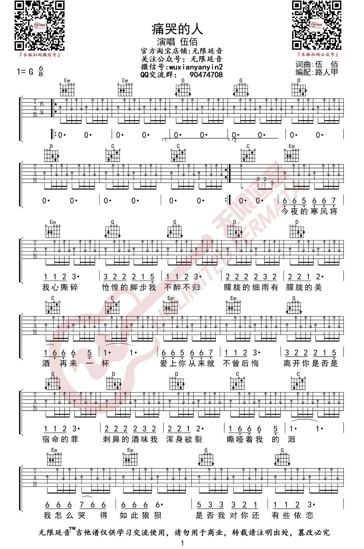 - 痛哭的人吉他谱_伍佰_G调弹唱谱_图片谱