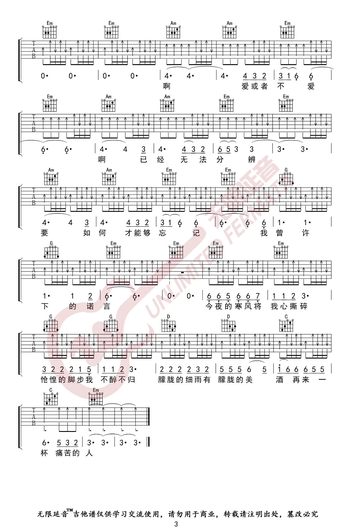 - 与我无关吉他谱_阿冗_G调指法_弹唱六线谱