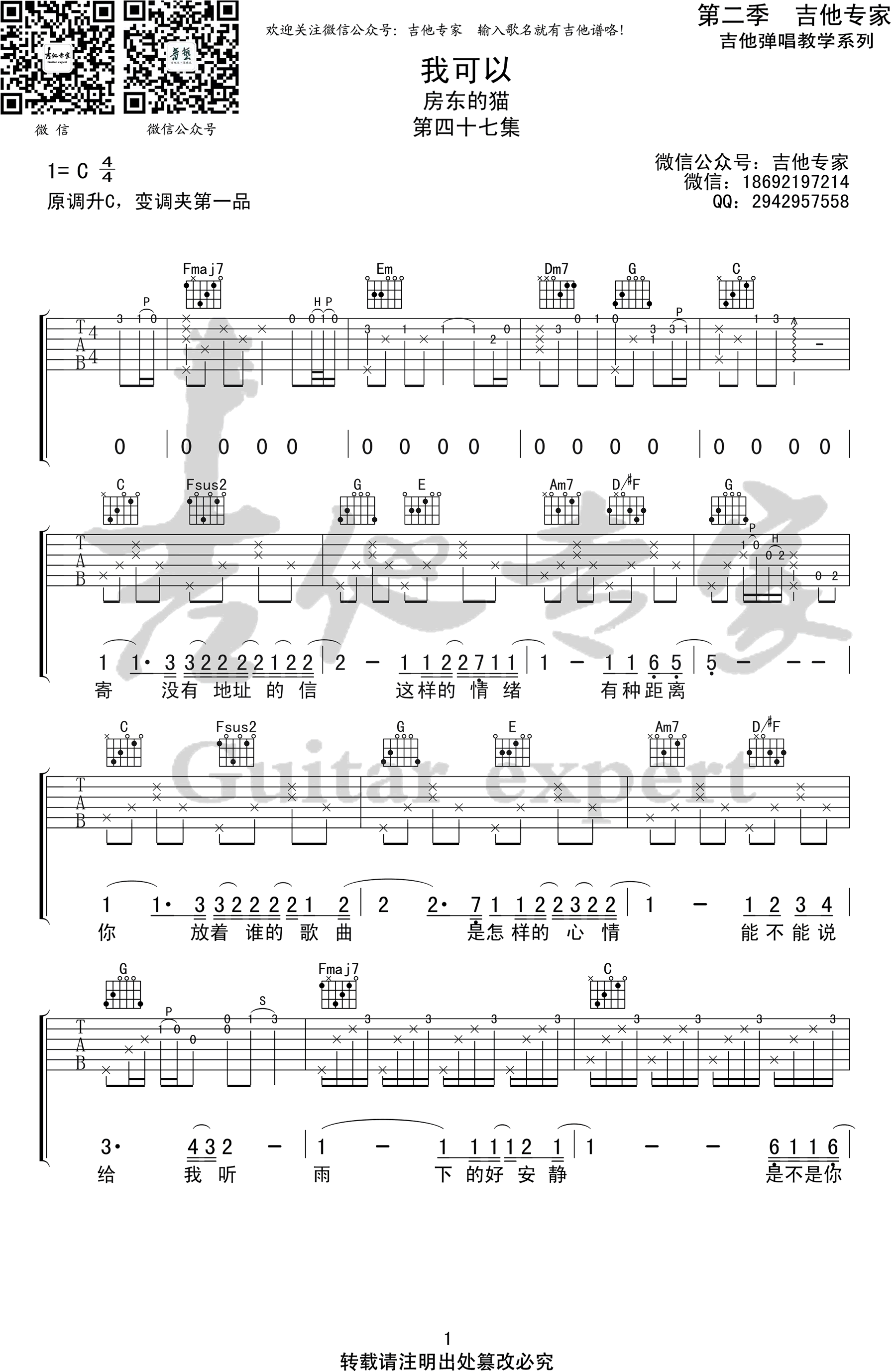 - 房东的猫《我可以》吉他谱_C调弹唱谱_高清版