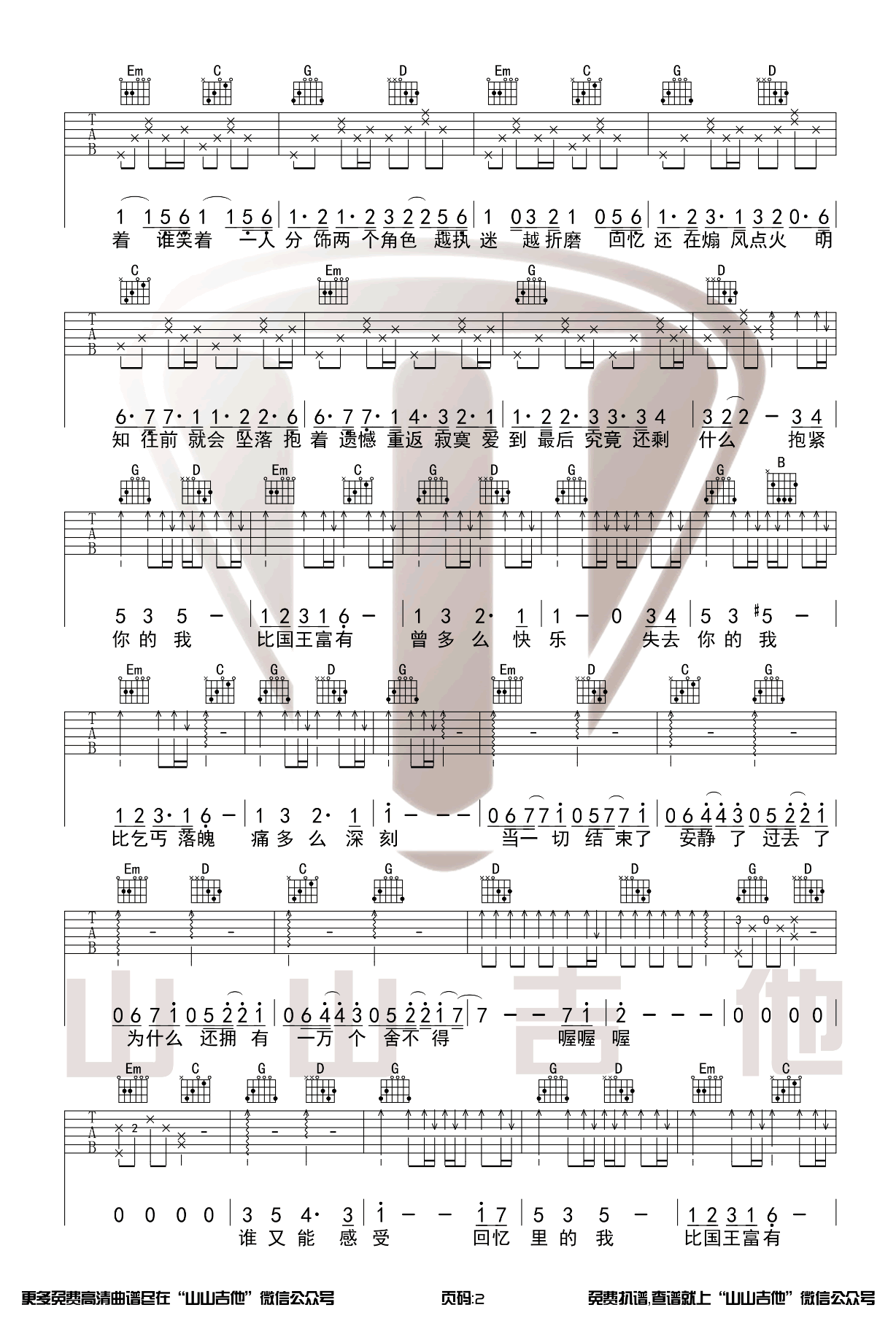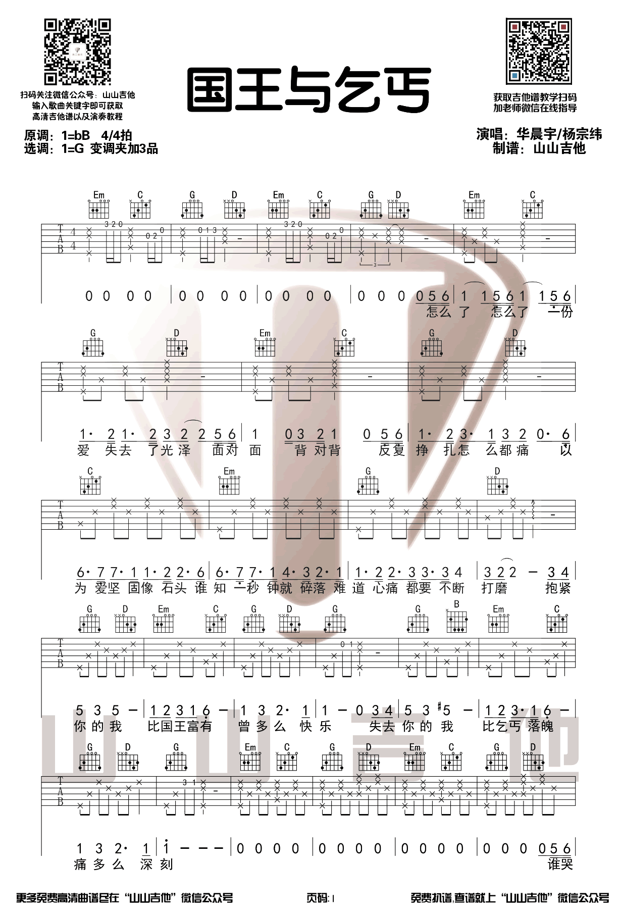 - 华晨宇《国王与乞丐》吉他谱_G调和弦原版_弹唱谱