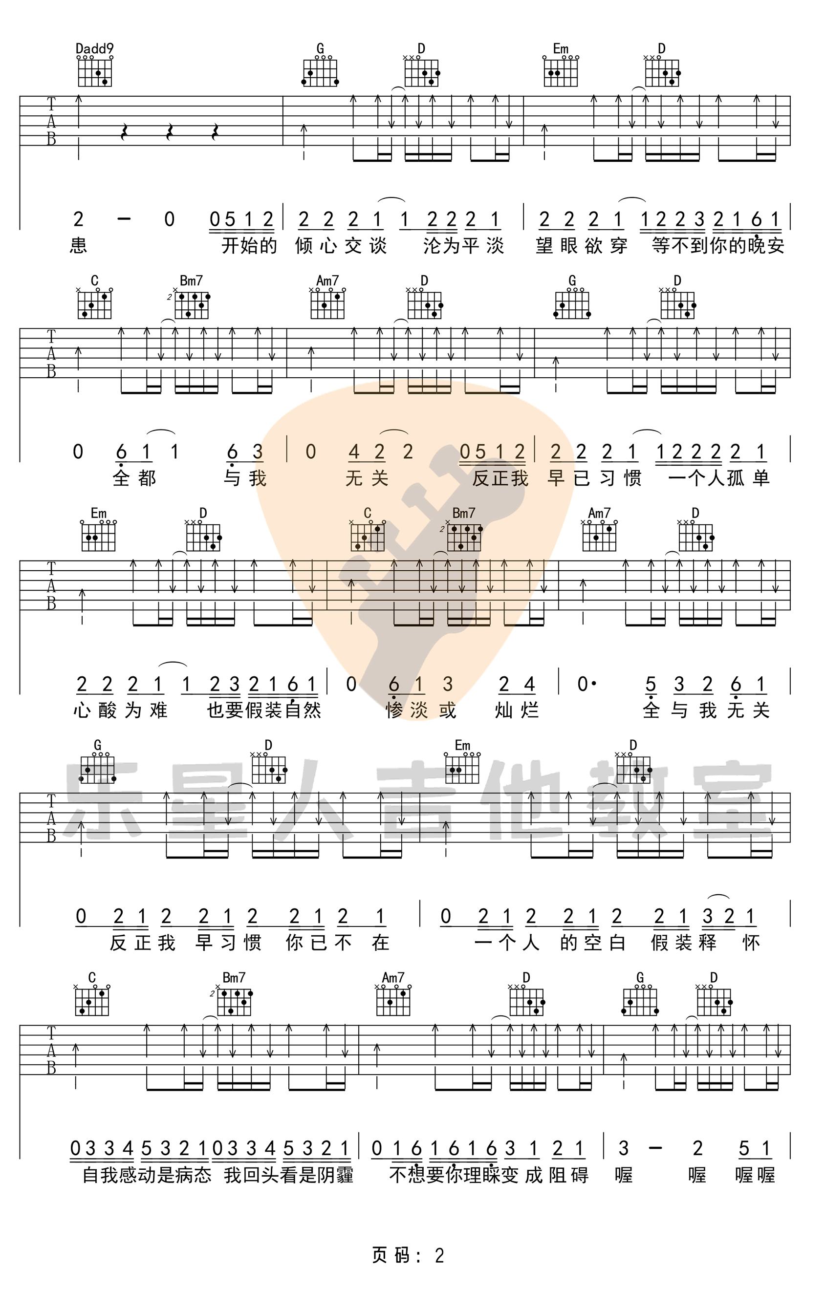 - 与我无关吉他谱_阿冗_G调弹唱谱_六线谱高清版
