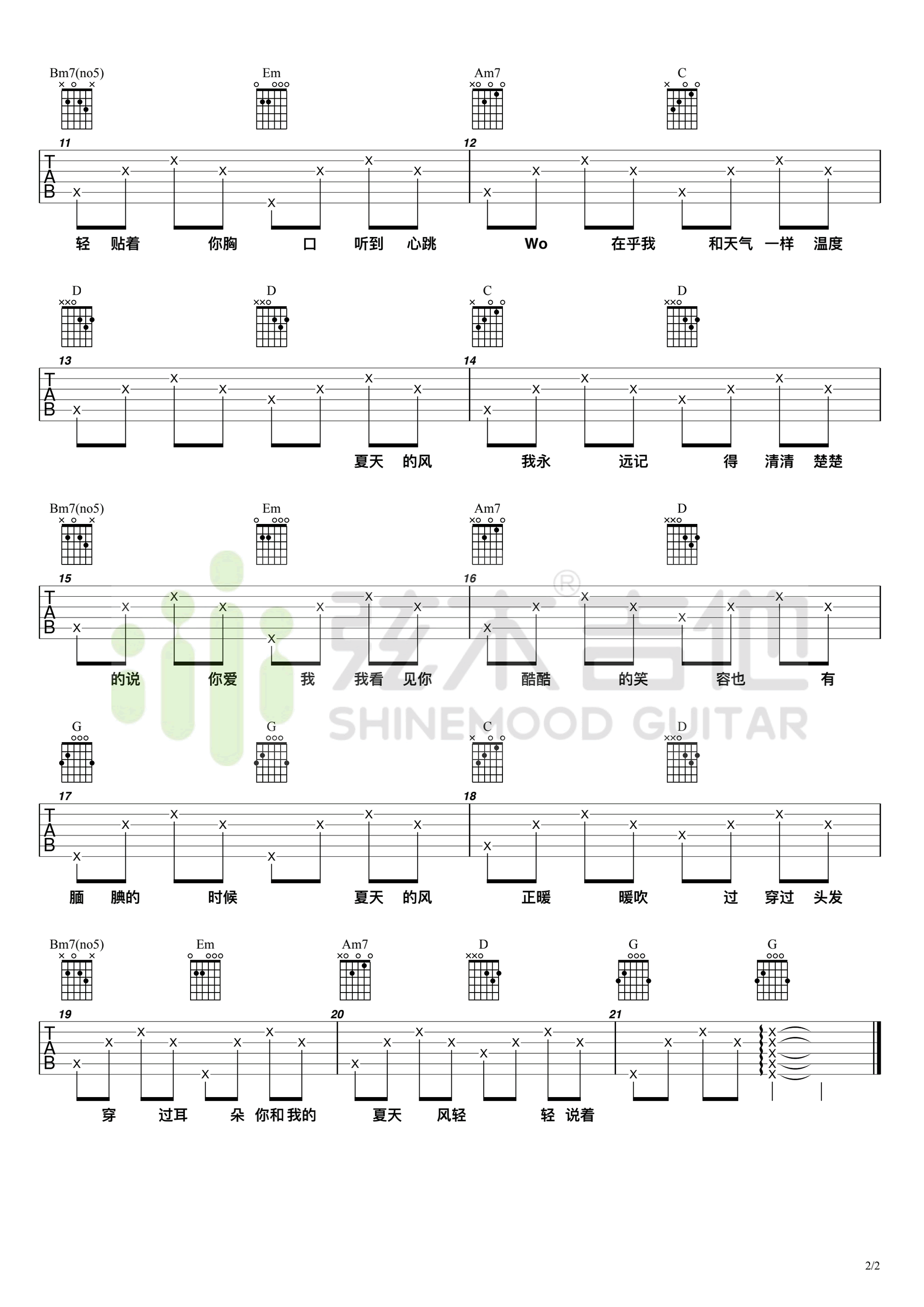 - 夏天的风吉他谱_温岚/刘瑞琦_G调_弹唱六线谱