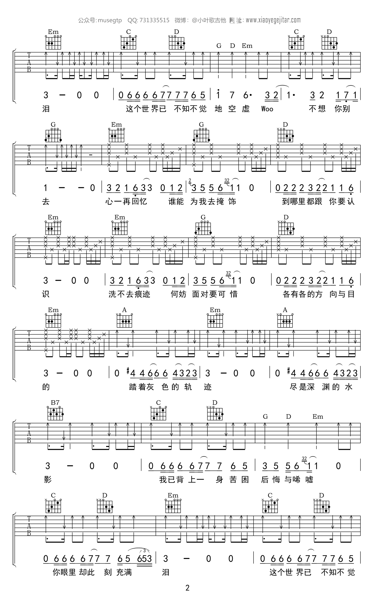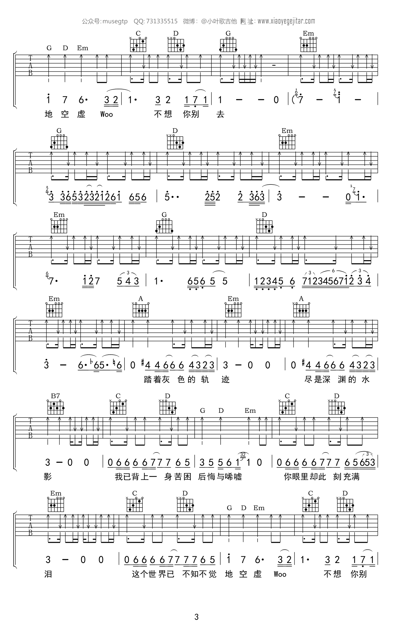 - 森林吉他谱_Mr._D调六线谱_吉他弹唱演示视频