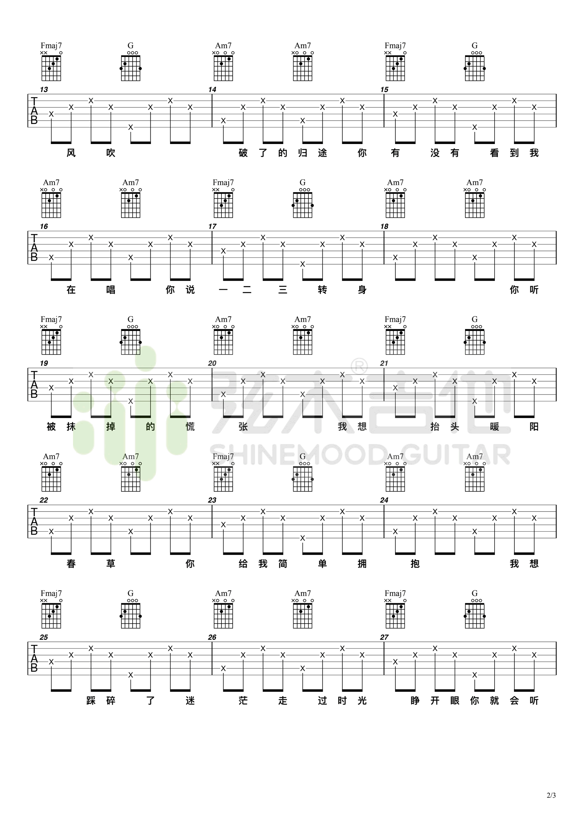 - 少年吉他谱_梦然_C调指法_弹唱六线谱_高清版