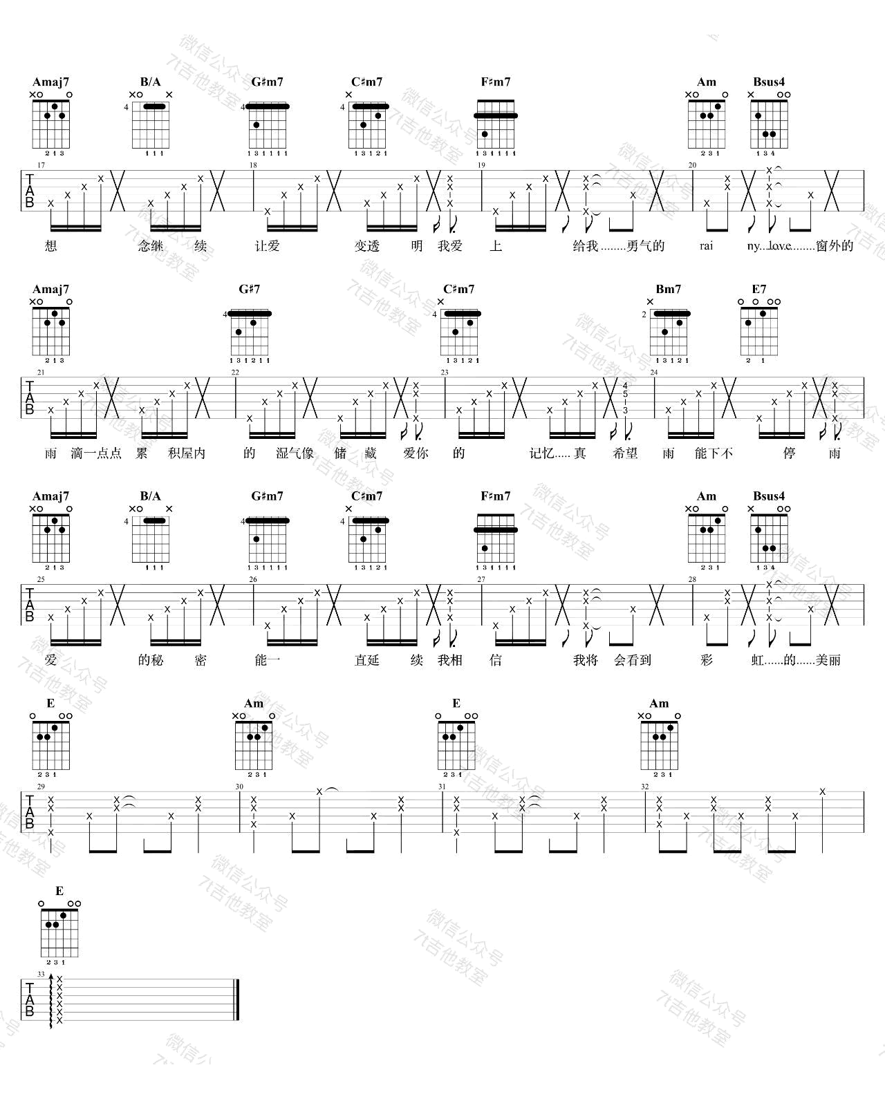 - 杨丞琳《雨爱》吉他谱_E调女生原版_吉他弹唱示范