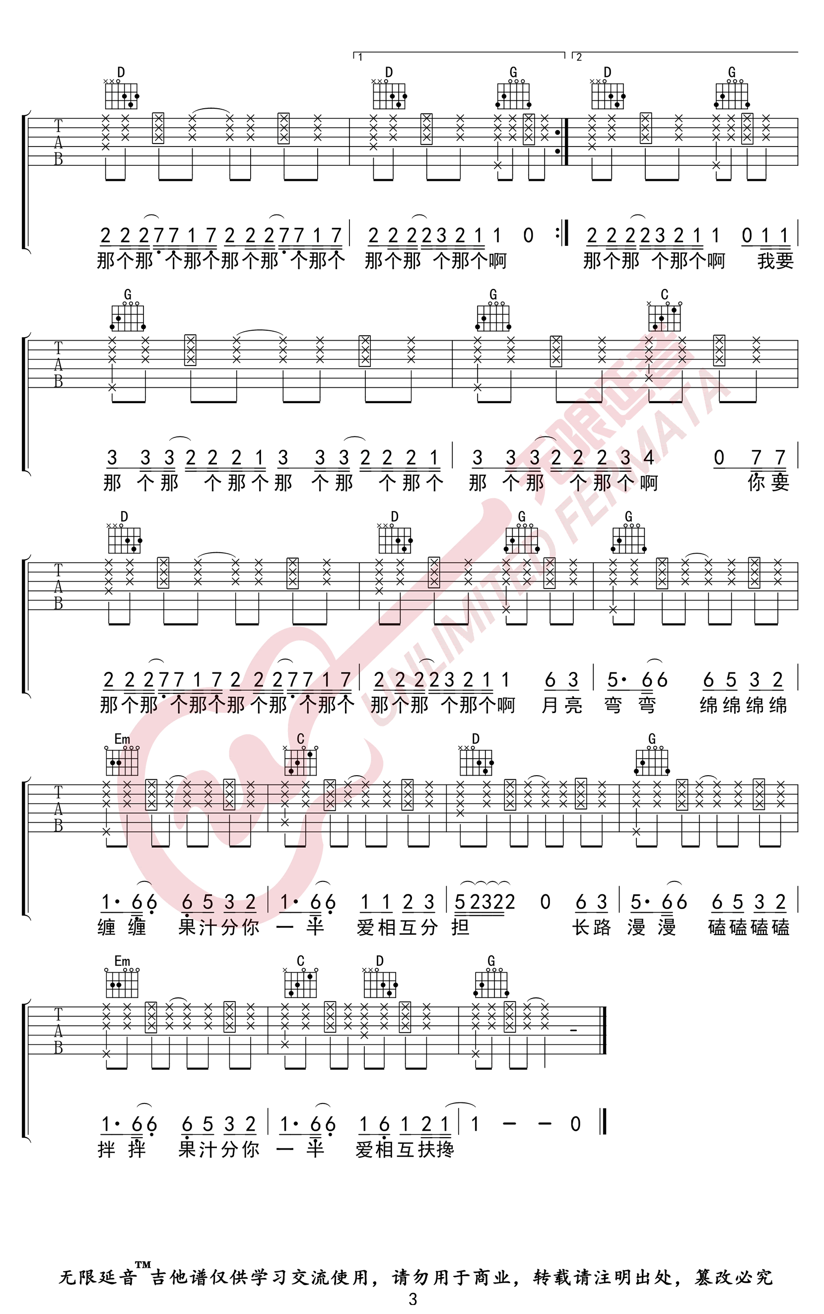- 果汁分你一半吉他谱_花儿乐队_G调_高清弹唱谱