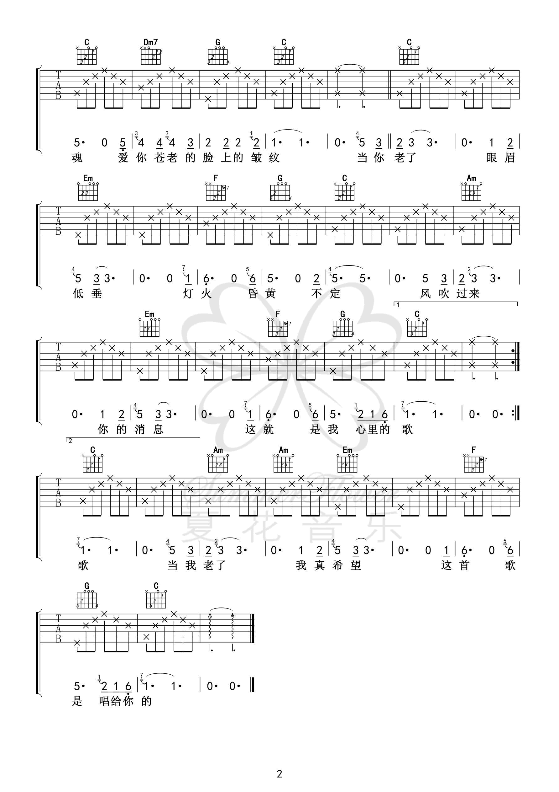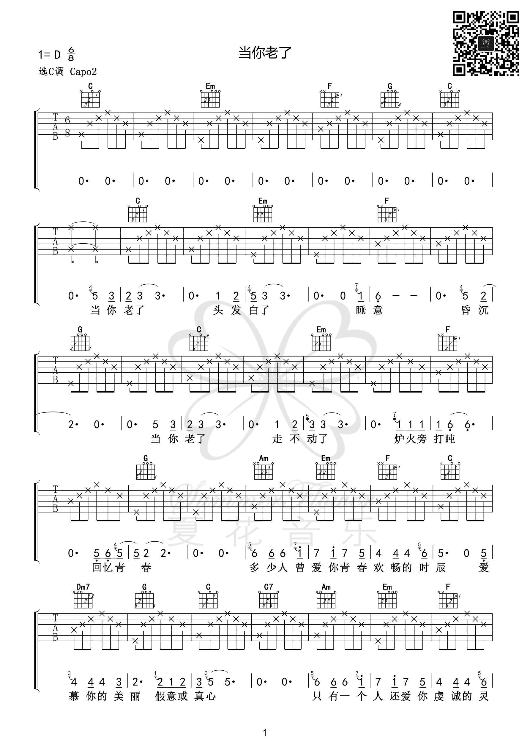 - 当你老了吉他谱_C调简易版_赵照_高清弹唱谱