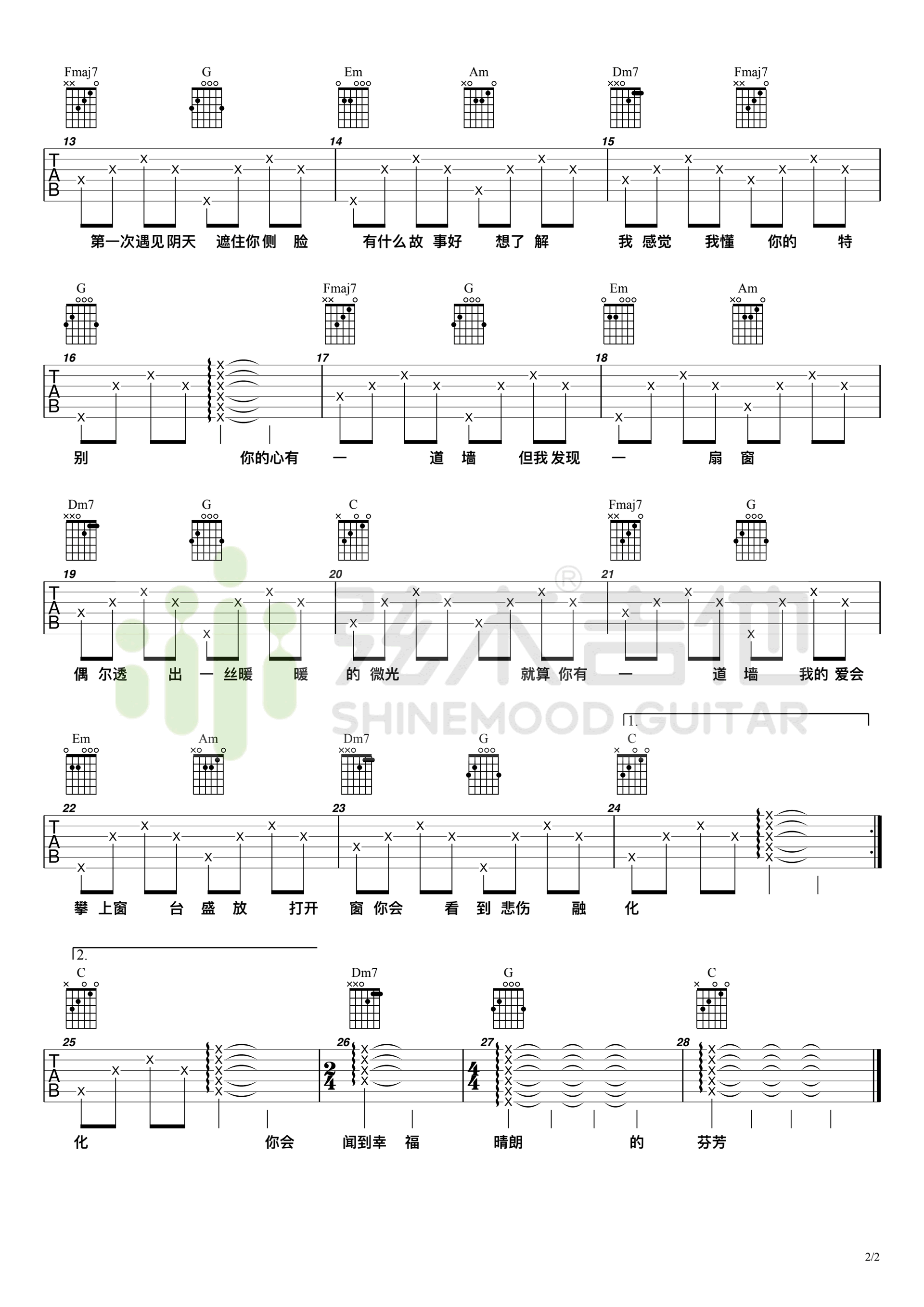 - 心墙吉他谱_林俊杰/郭静_C调_弹唱六线谱