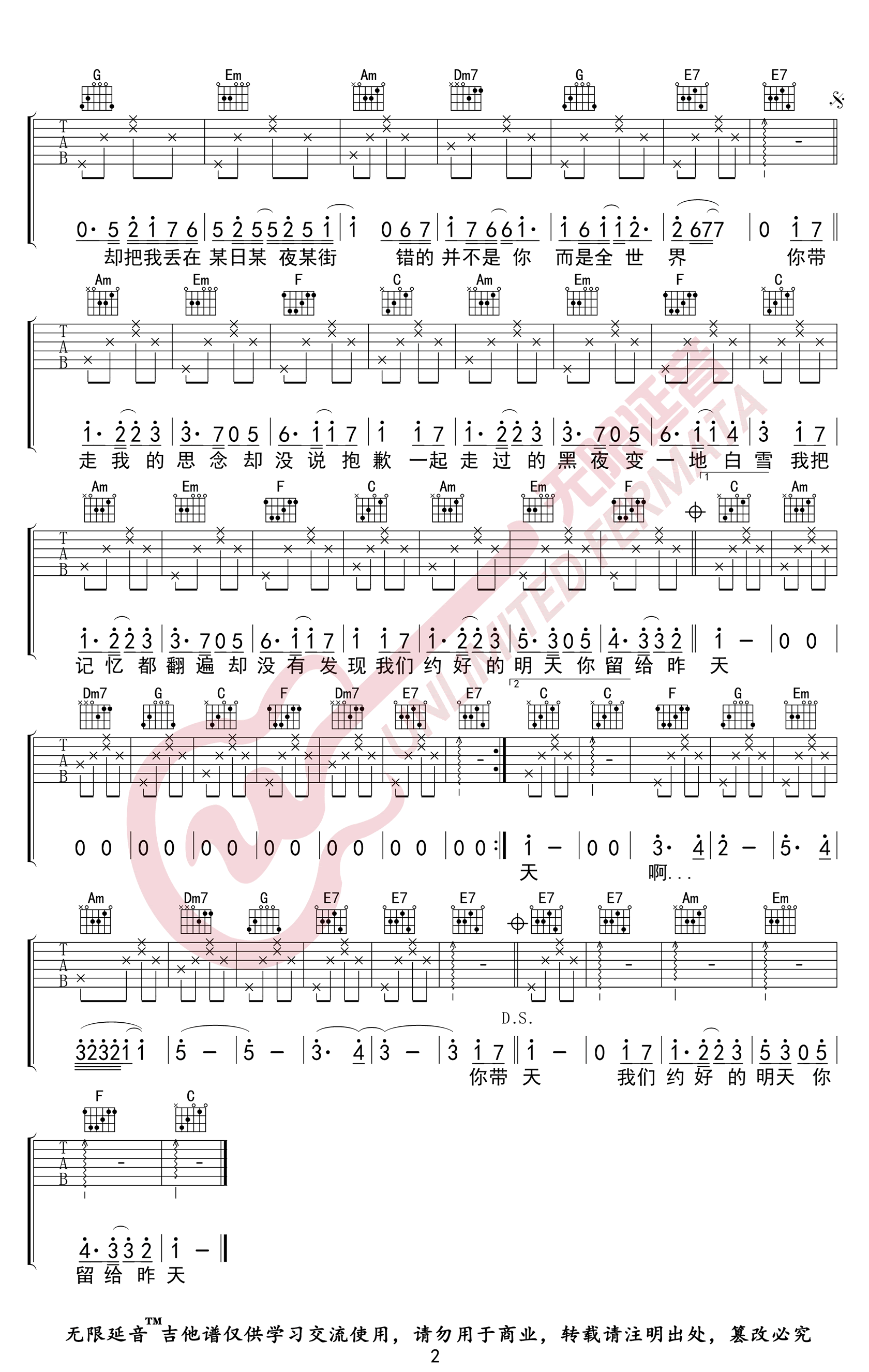 - 与我无关吉他谱_阿冗_G调_初级原版_弹唱谱