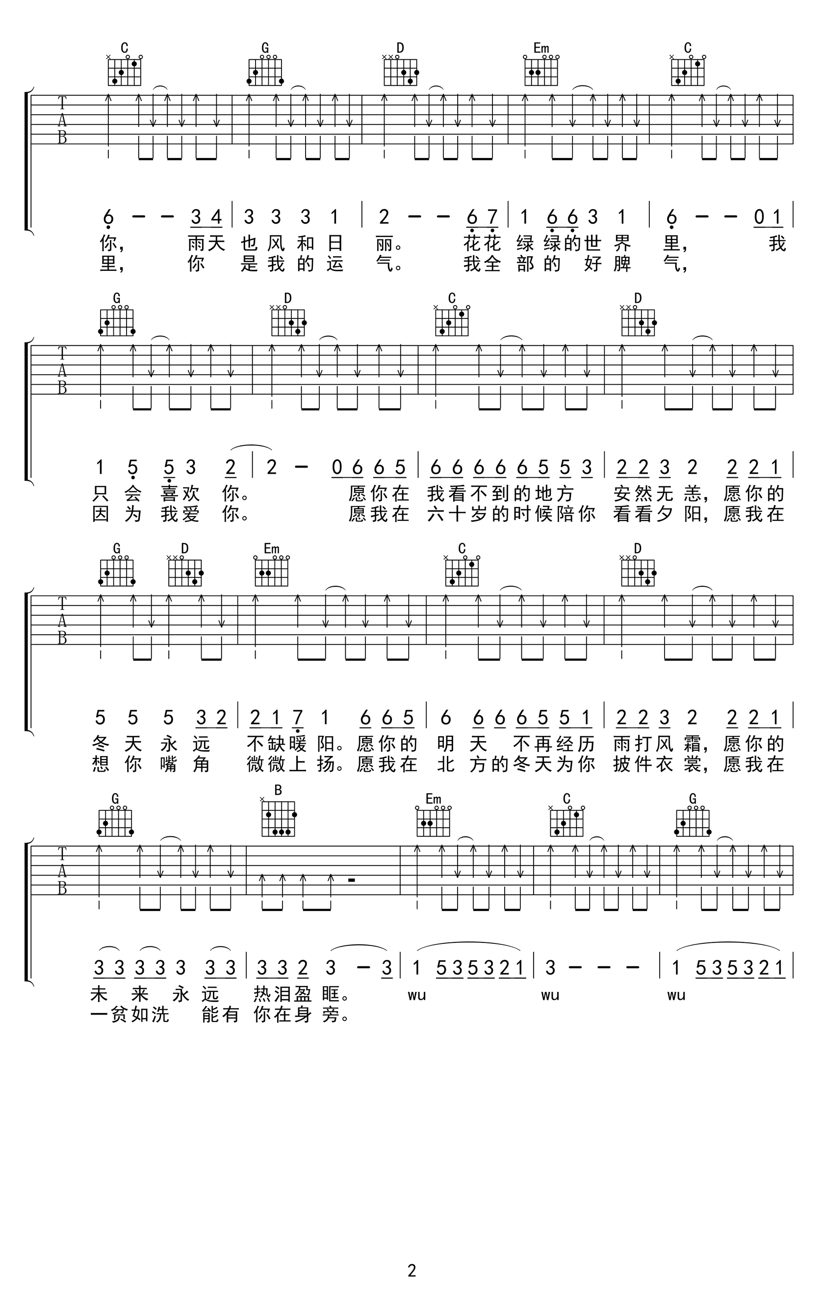 - 房东的猫《我可以》吉他谱_C调弹唱谱_高清版