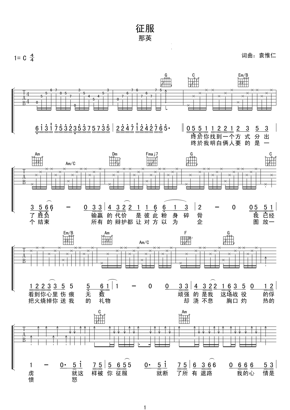 - 嚣张吉他谱C调_EN《嚣张》六线谱_高清弹唱谱