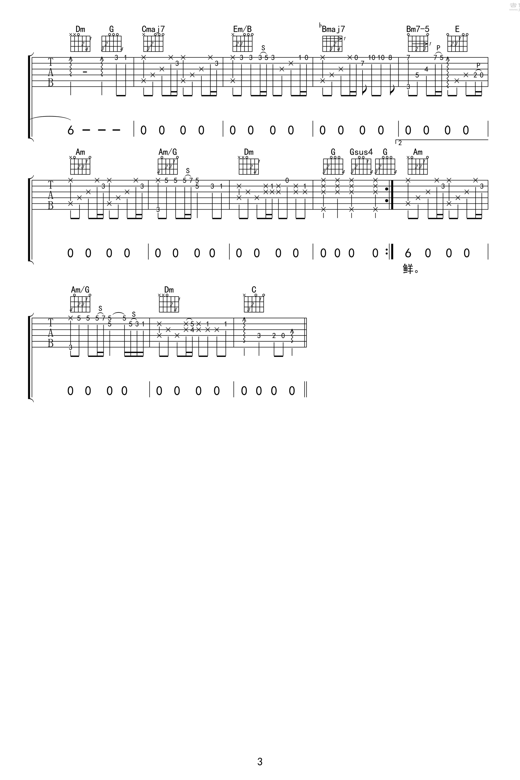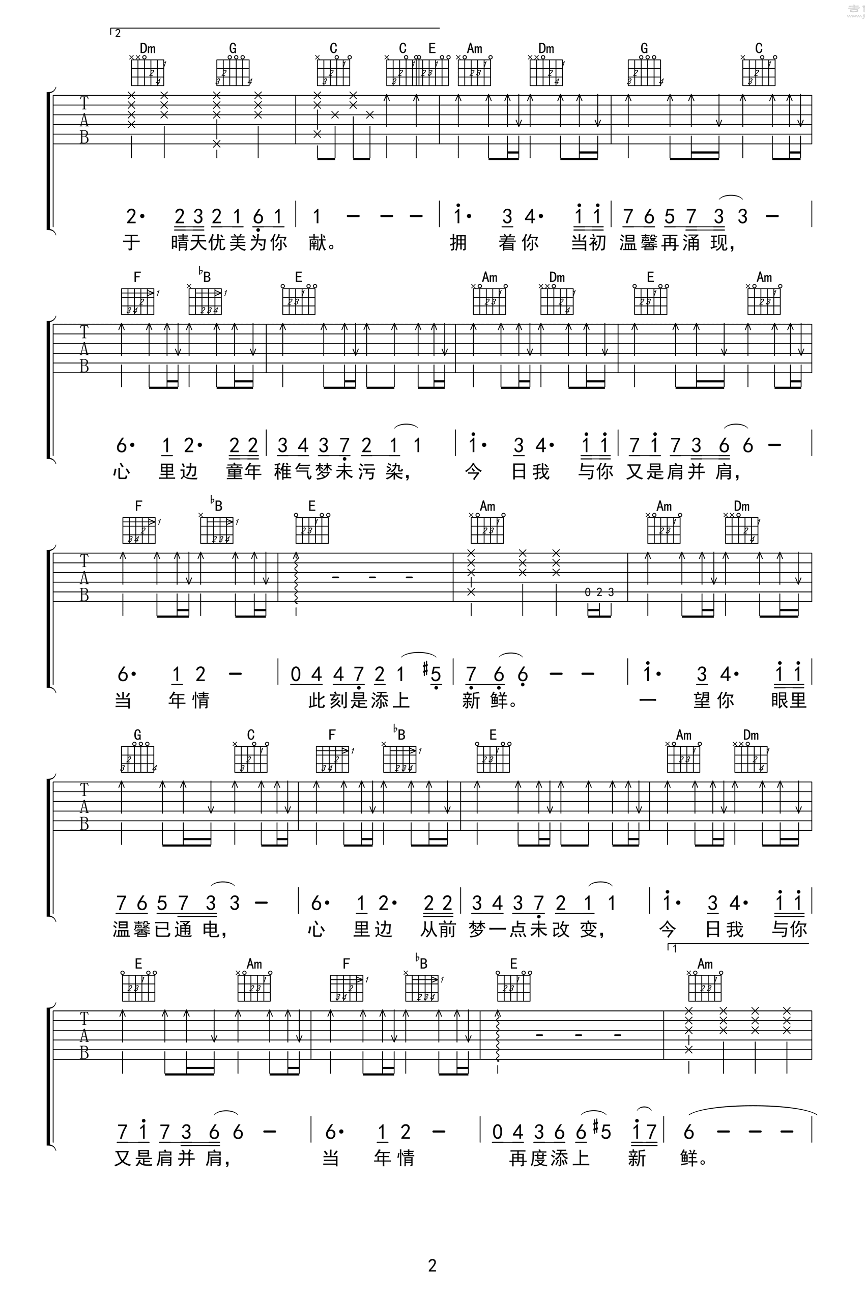 - 渐冷吉他谱_雪二《渐冷》C调弹唱_原版六线谱