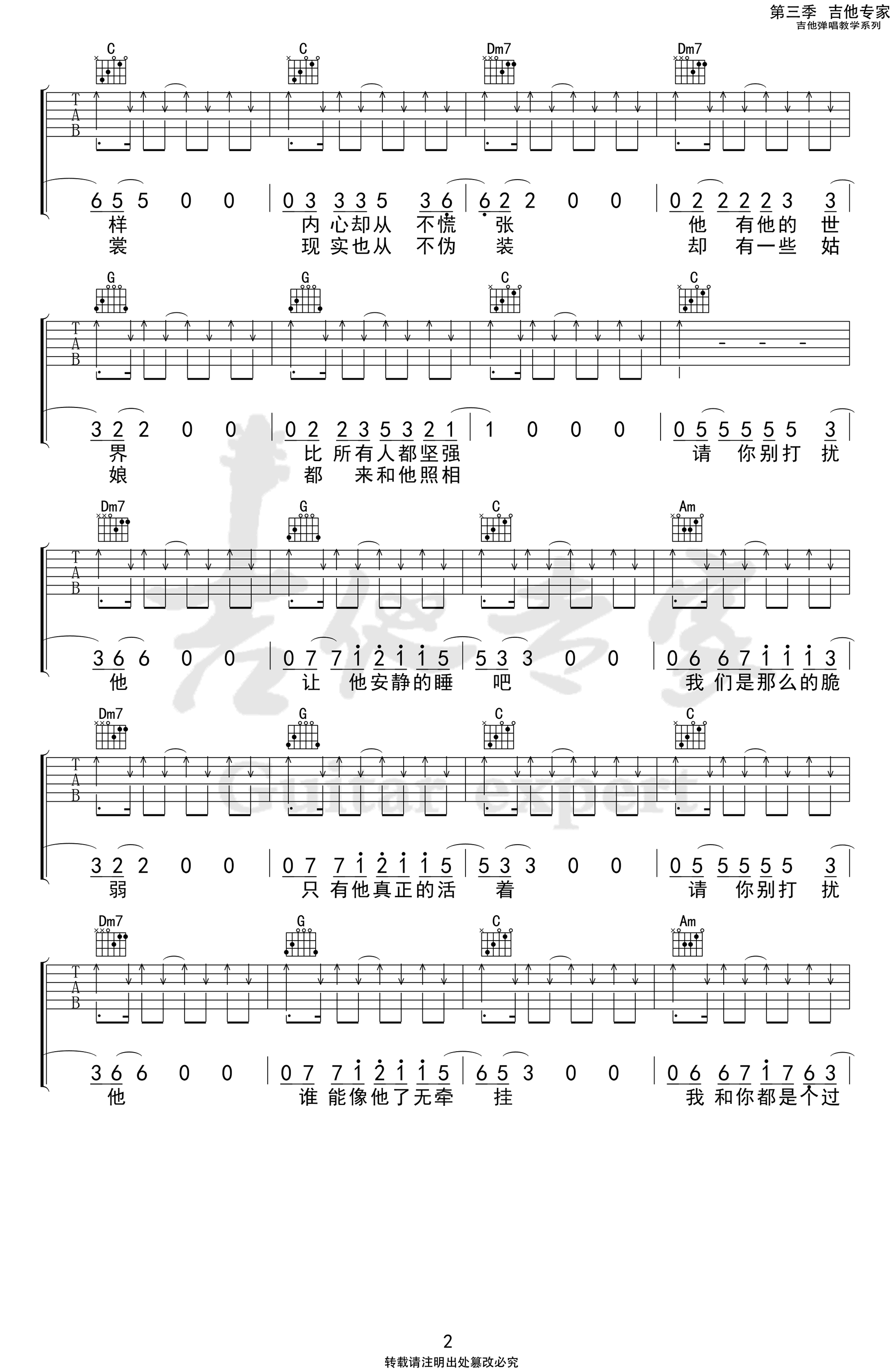 - 别打扰他吉他谱_贰佰_C调弹唱谱_高清六线谱