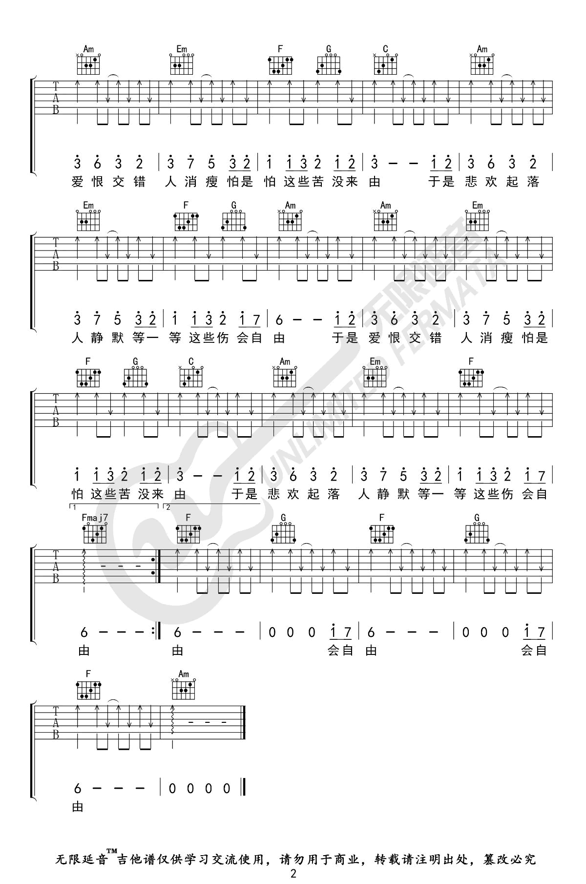 - 渐冷吉他谱_雪二《渐冷》C调弹唱_原版六线谱