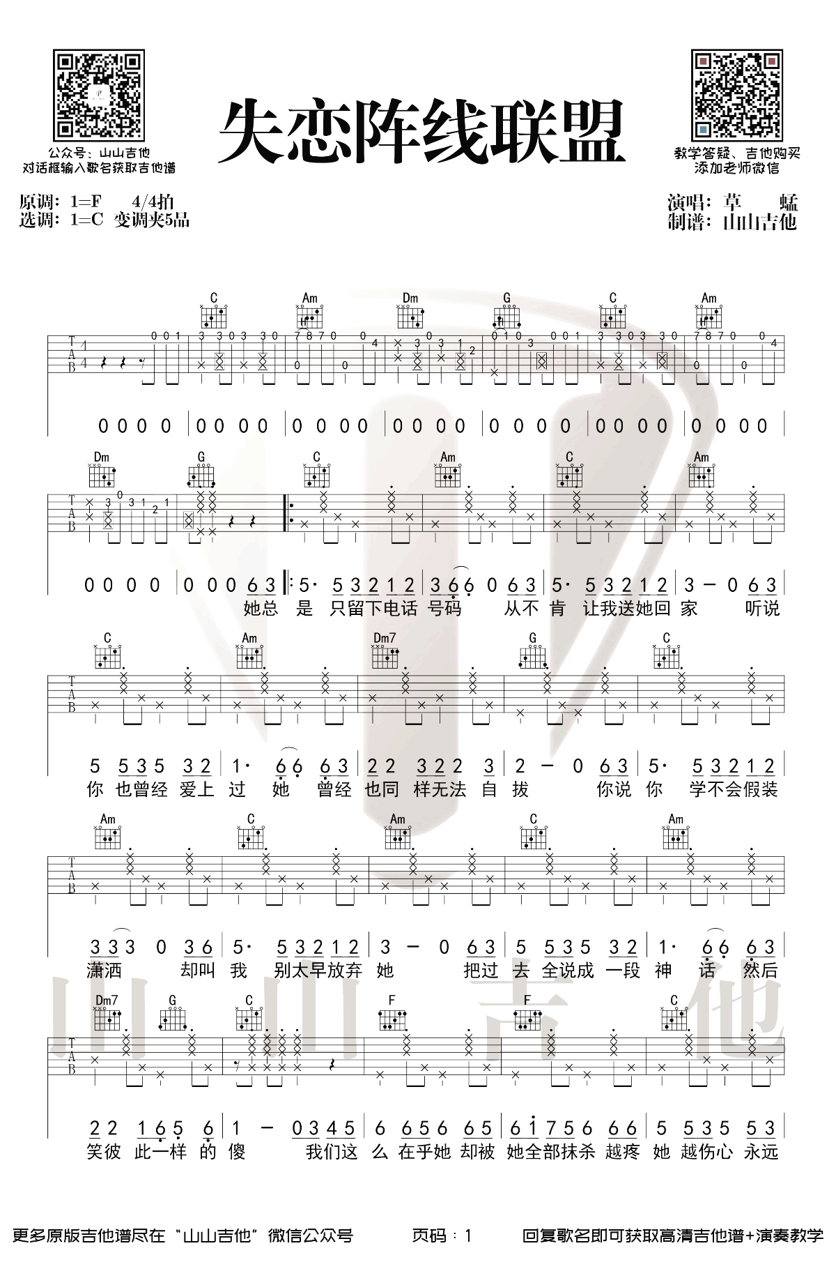 - 失恋阵线联盟吉他谱_草蜢_C调_吉他弹唱演示视频