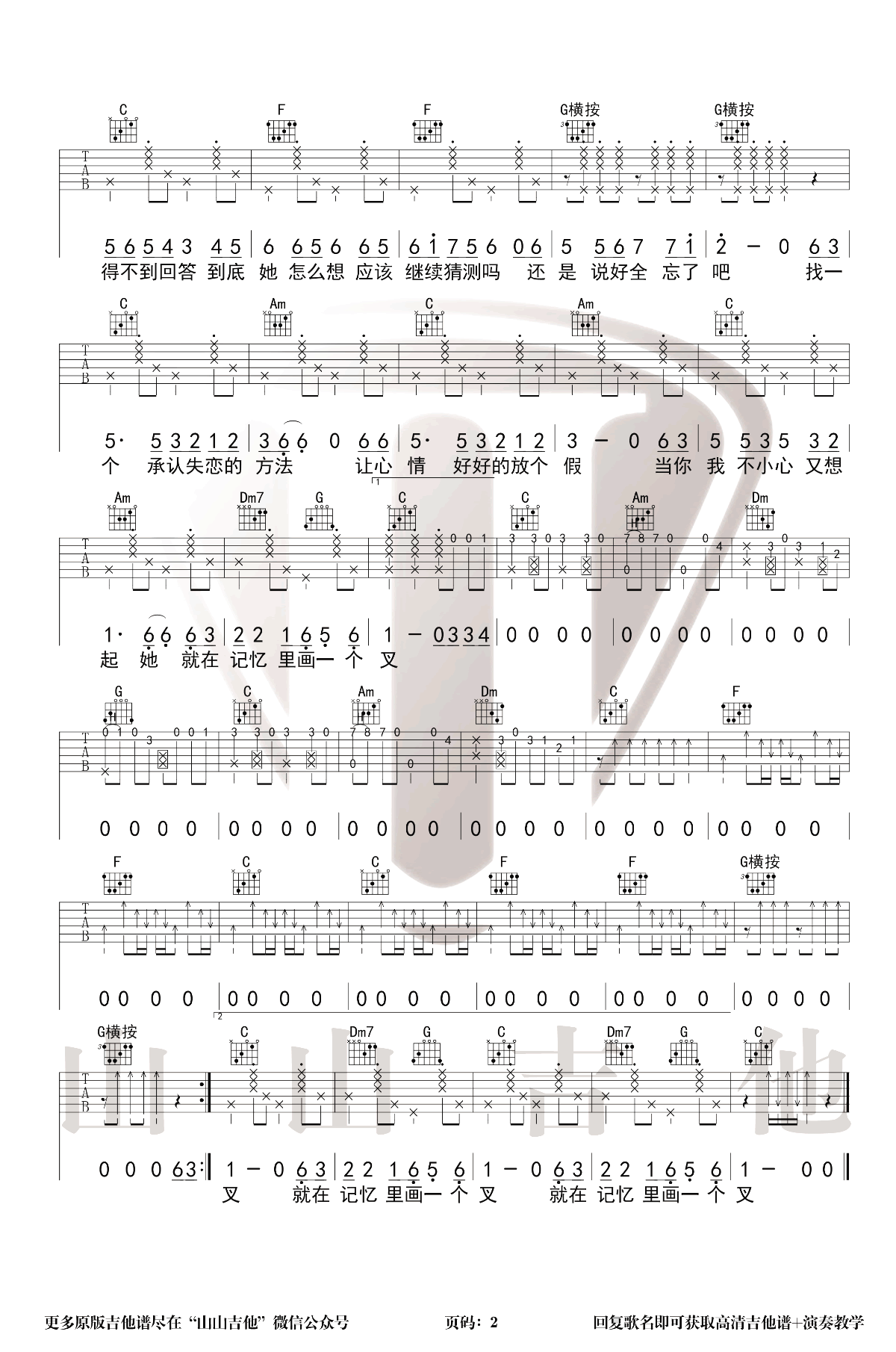 - 渐冷吉他谱_雪二《渐冷》C调弹唱_原版六线谱