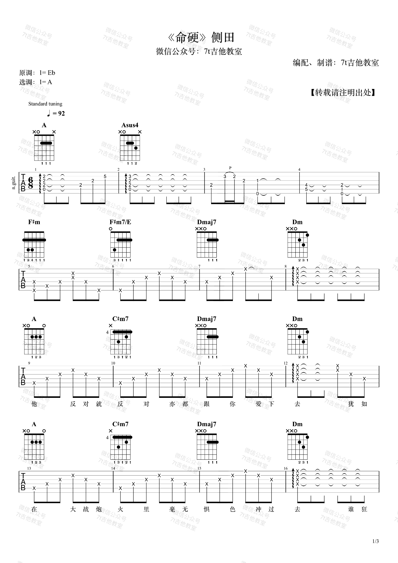 - 命硬吉他谱_侧田_A调弹唱谱_吉他演示视频