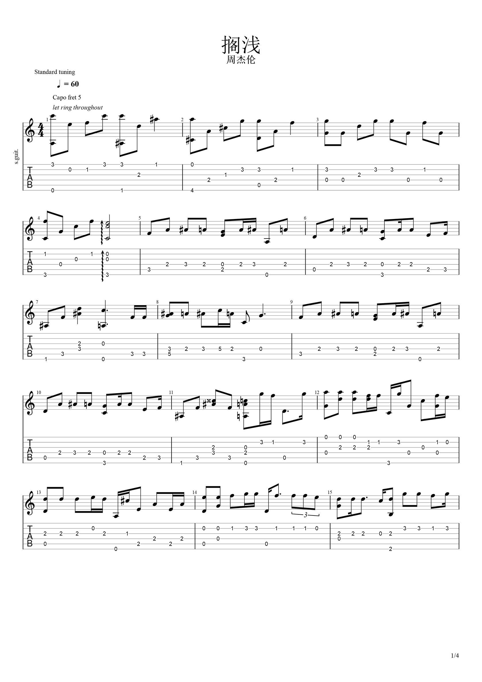 - 搁浅指弹谱_周杰伦_高度还原_吉他独奏谱