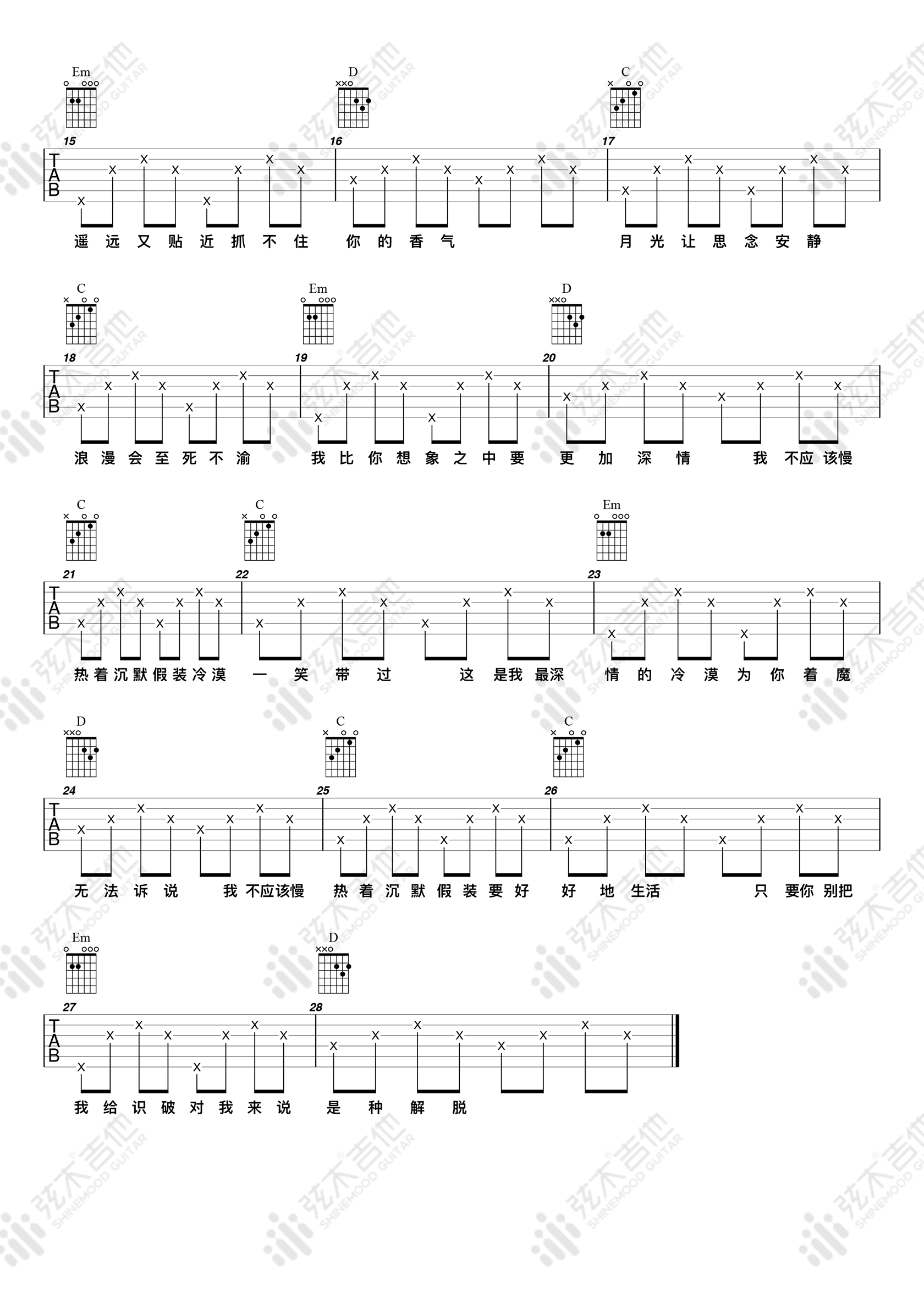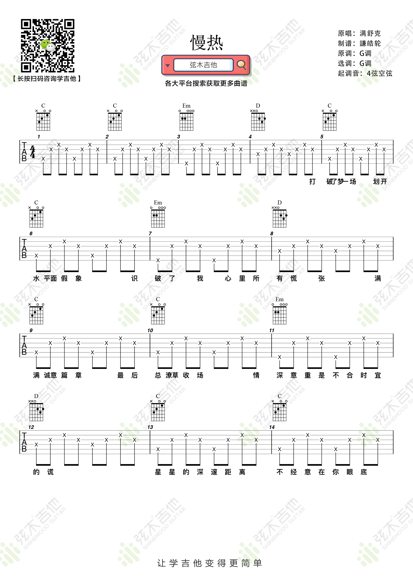 - 慢热吉他谱_满舒克_G调简单版_弹唱谱