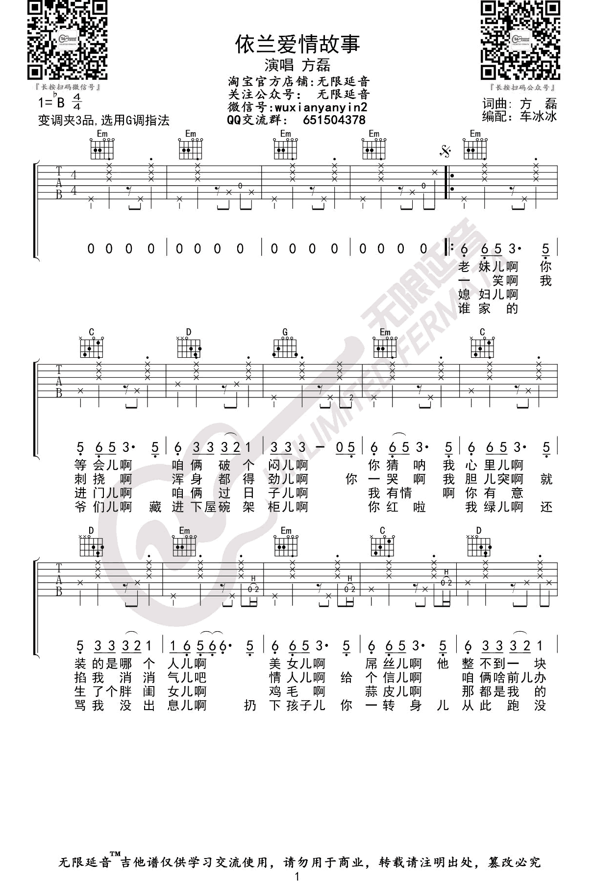 - 依兰爱情故事吉他谱_石磊_G调弹唱谱_你好李焕英片尾曲