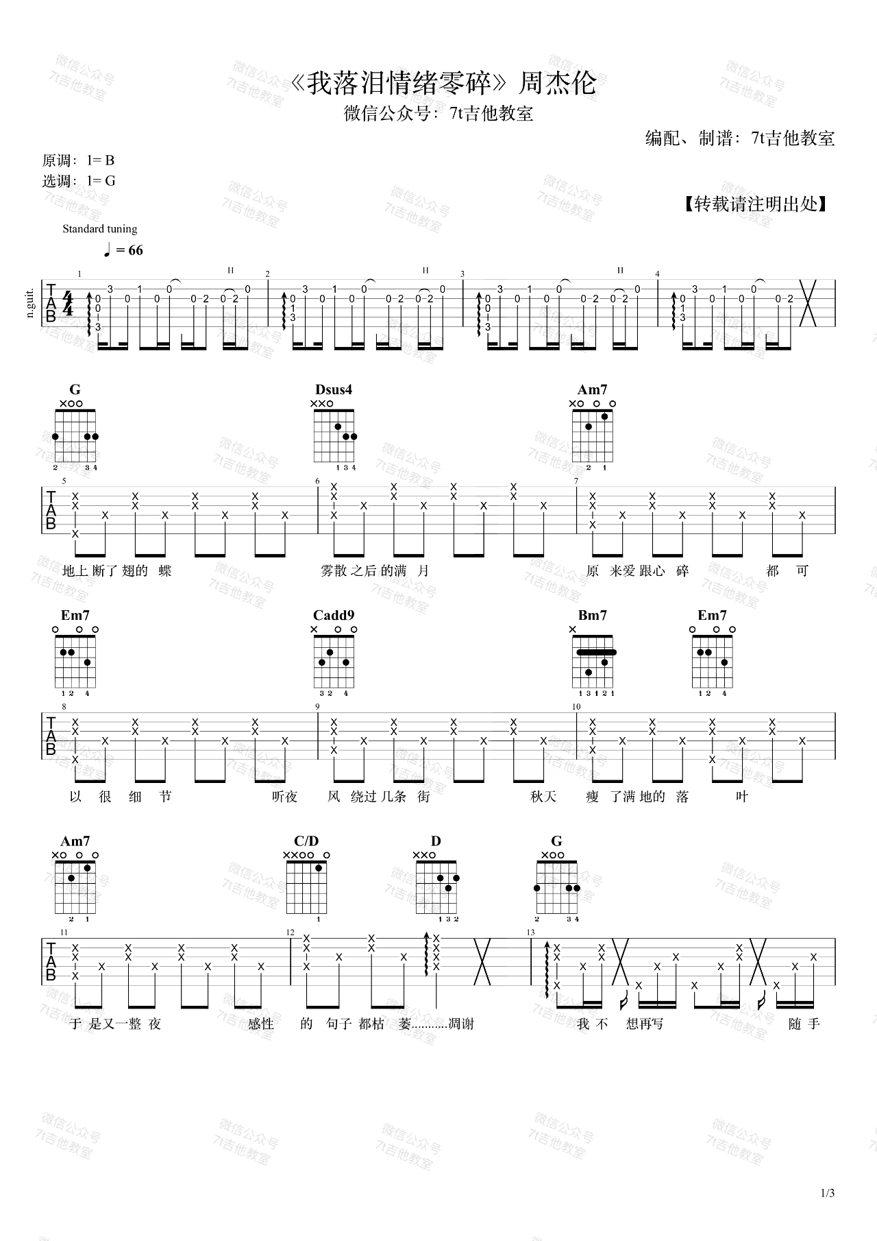 - 我落泪情绪零碎吉他谱_周杰伦_和弦分析_弹唱演示视频
