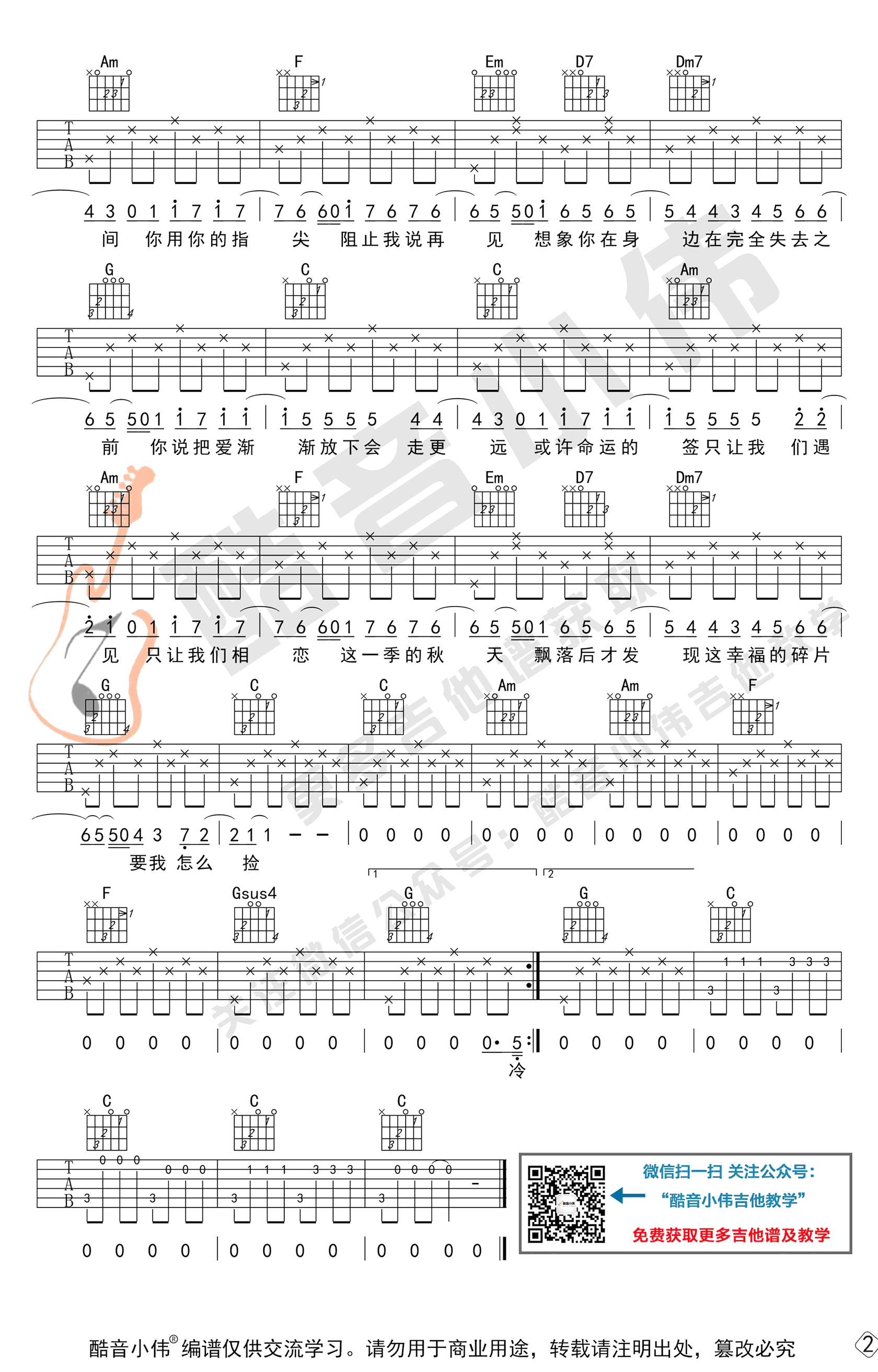 - 爱人错过吉他谱_告五人_C调原版_弹唱六线谱