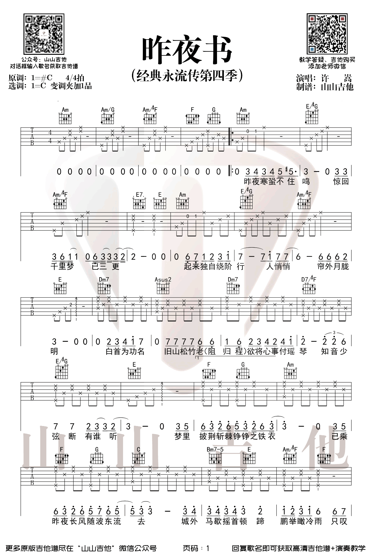 - 昨夜书吉他谱_许嵩《经典咏流传》_C调弹唱谱