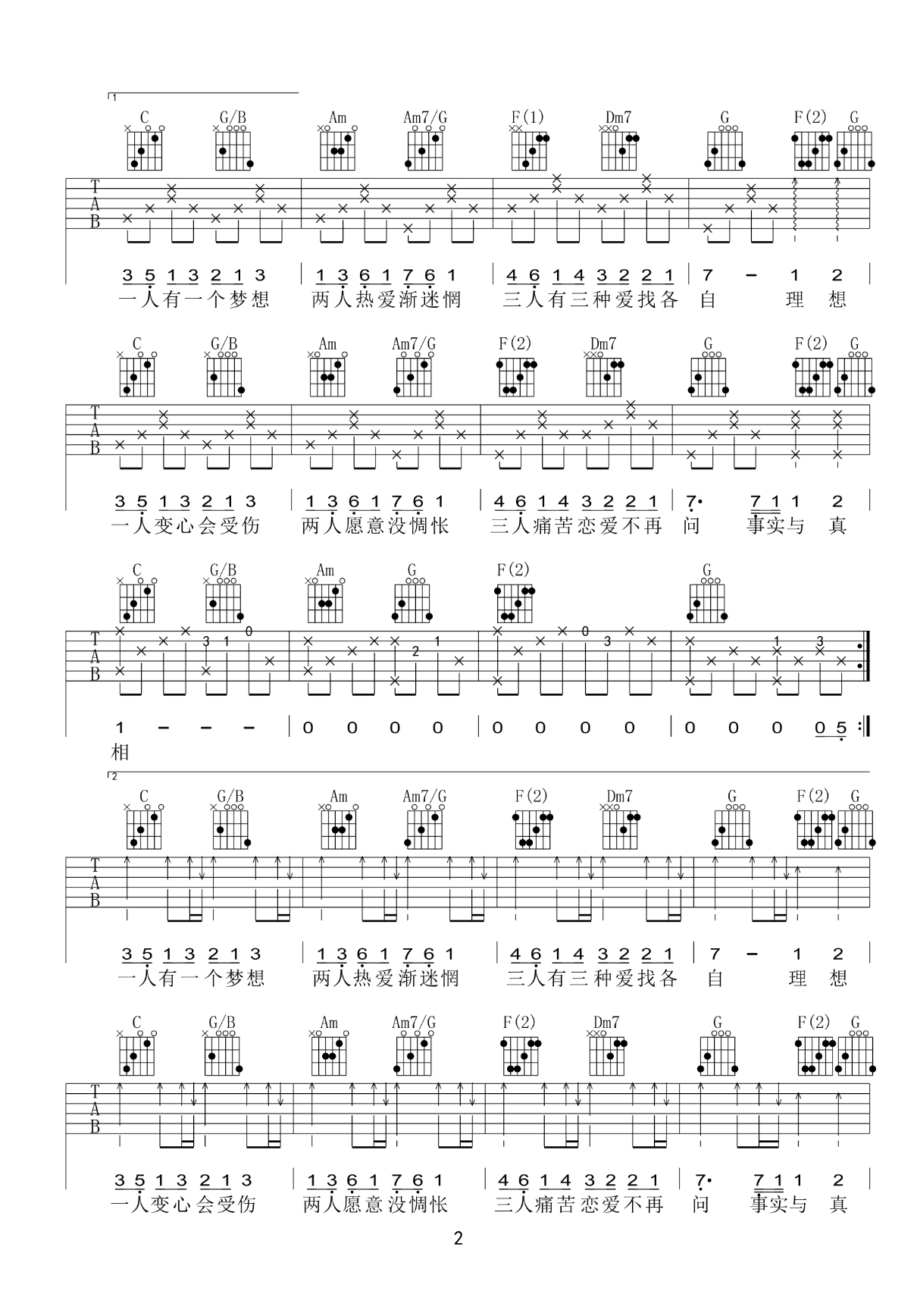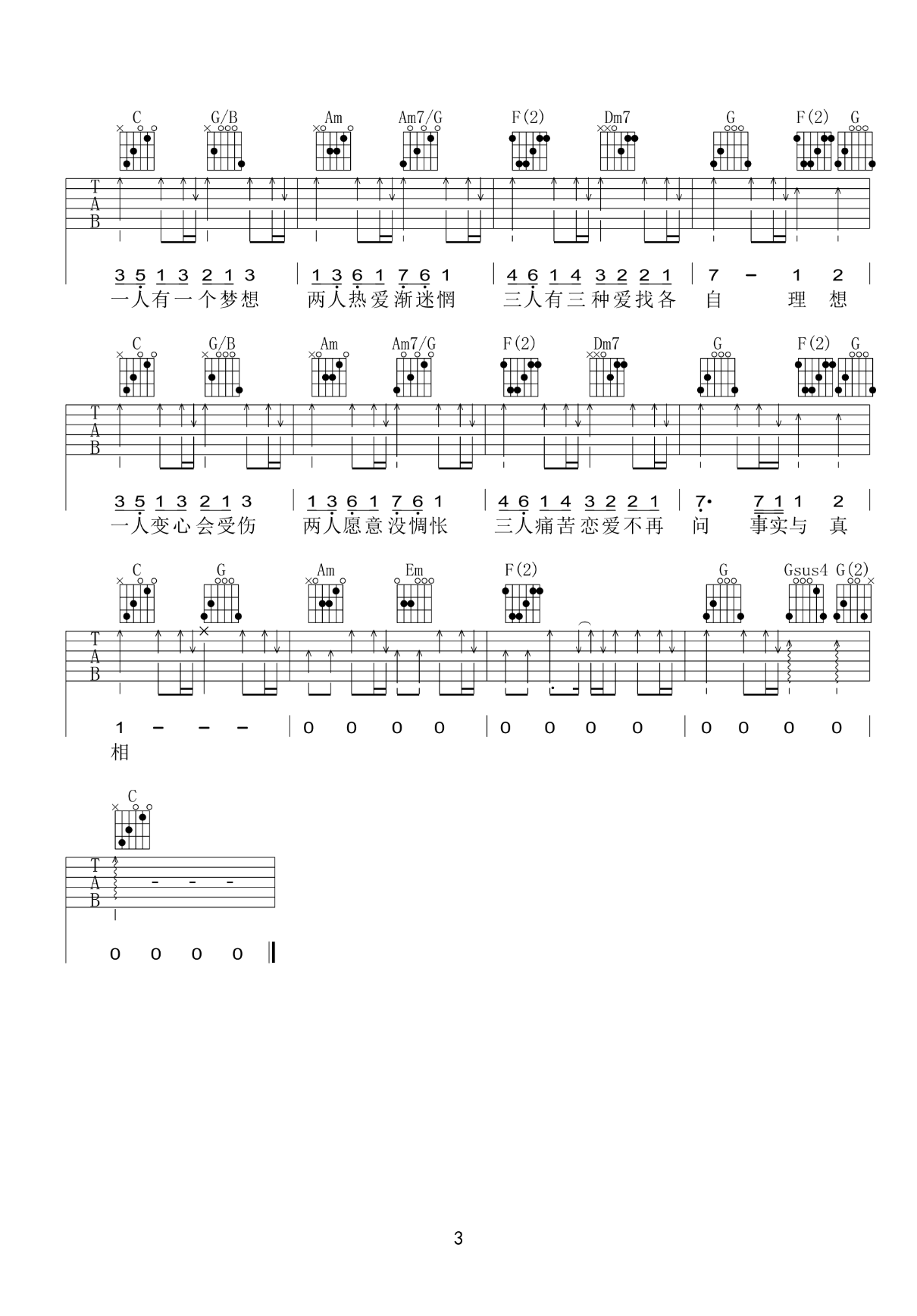 - 爱就一个字吉他谱_张信哲_C调_弹唱六线谱