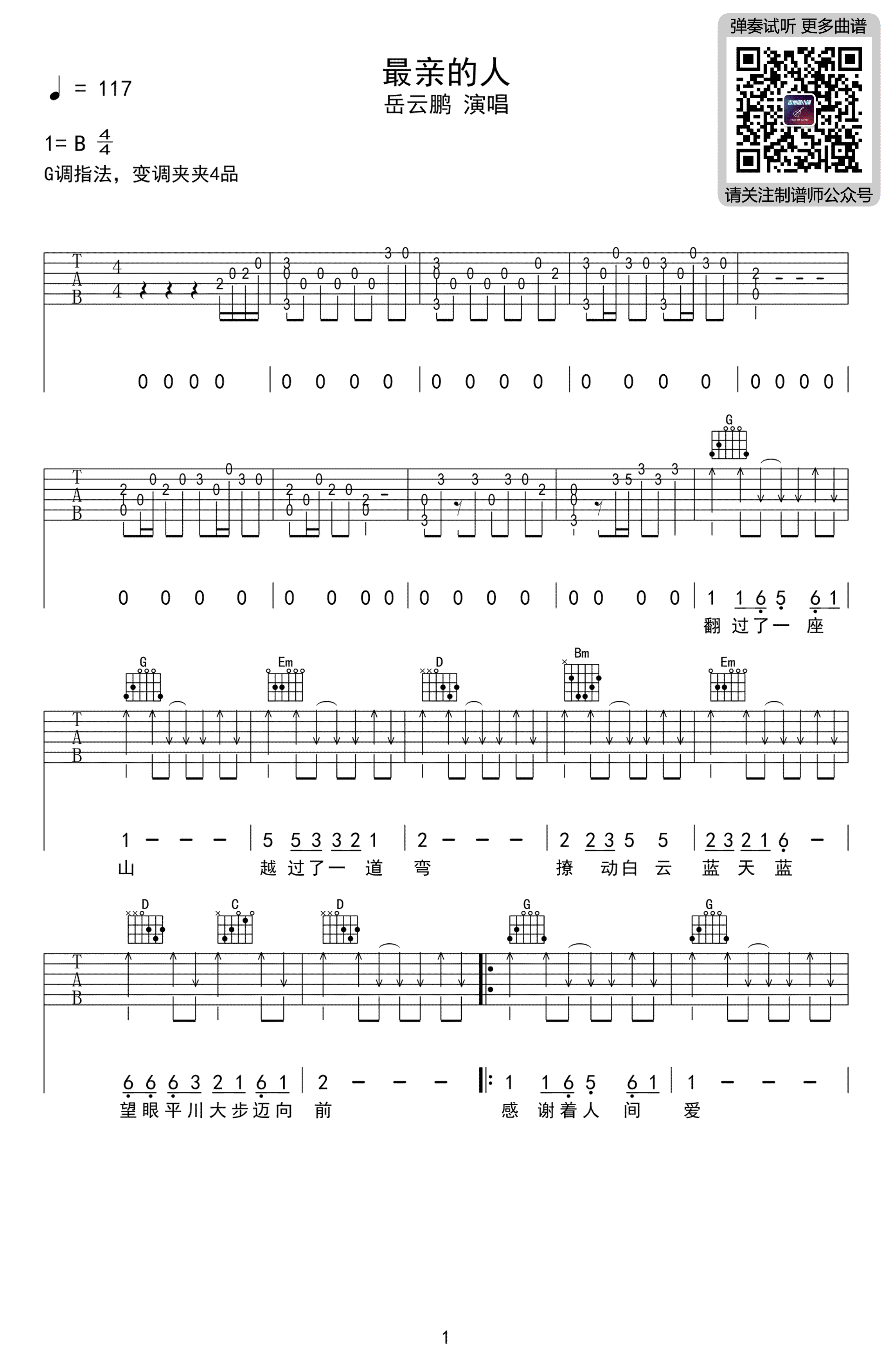 - 最亲爱的吉他谱_岳云鹏_G调弹唱谱_高清完整版