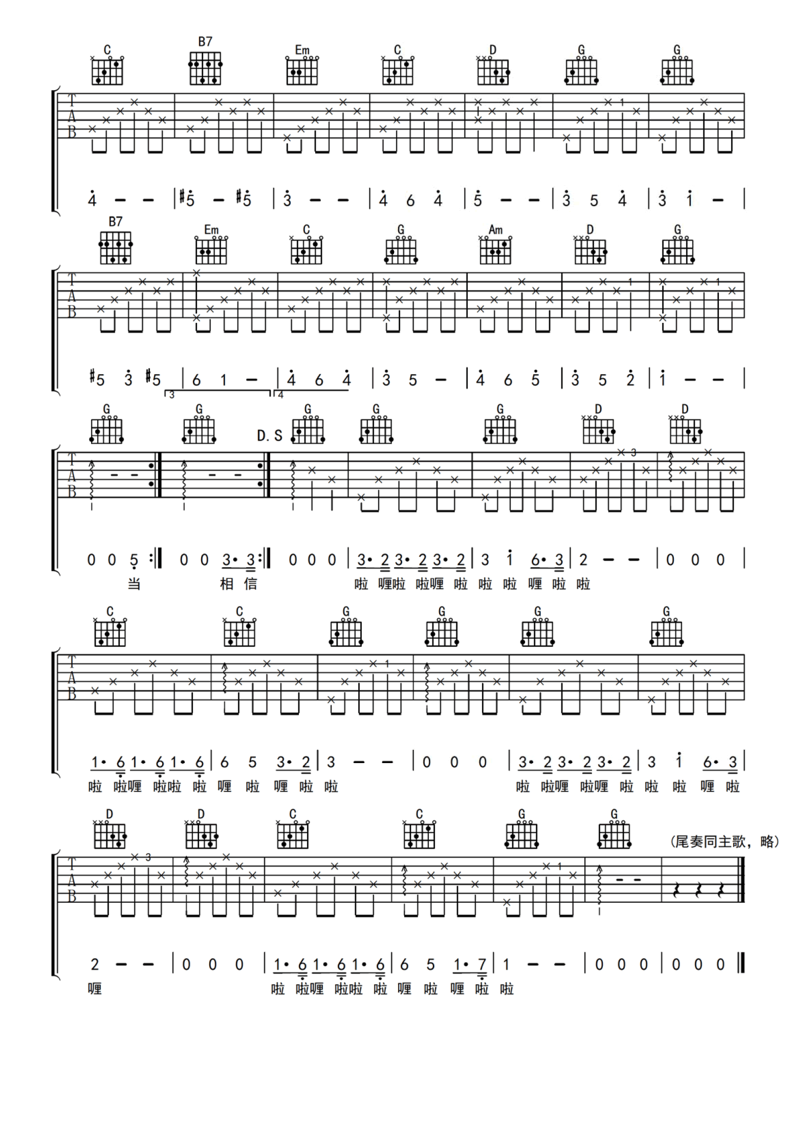 - 木偶人吉他谱_薛之谦_C调和弦编配_图片谱