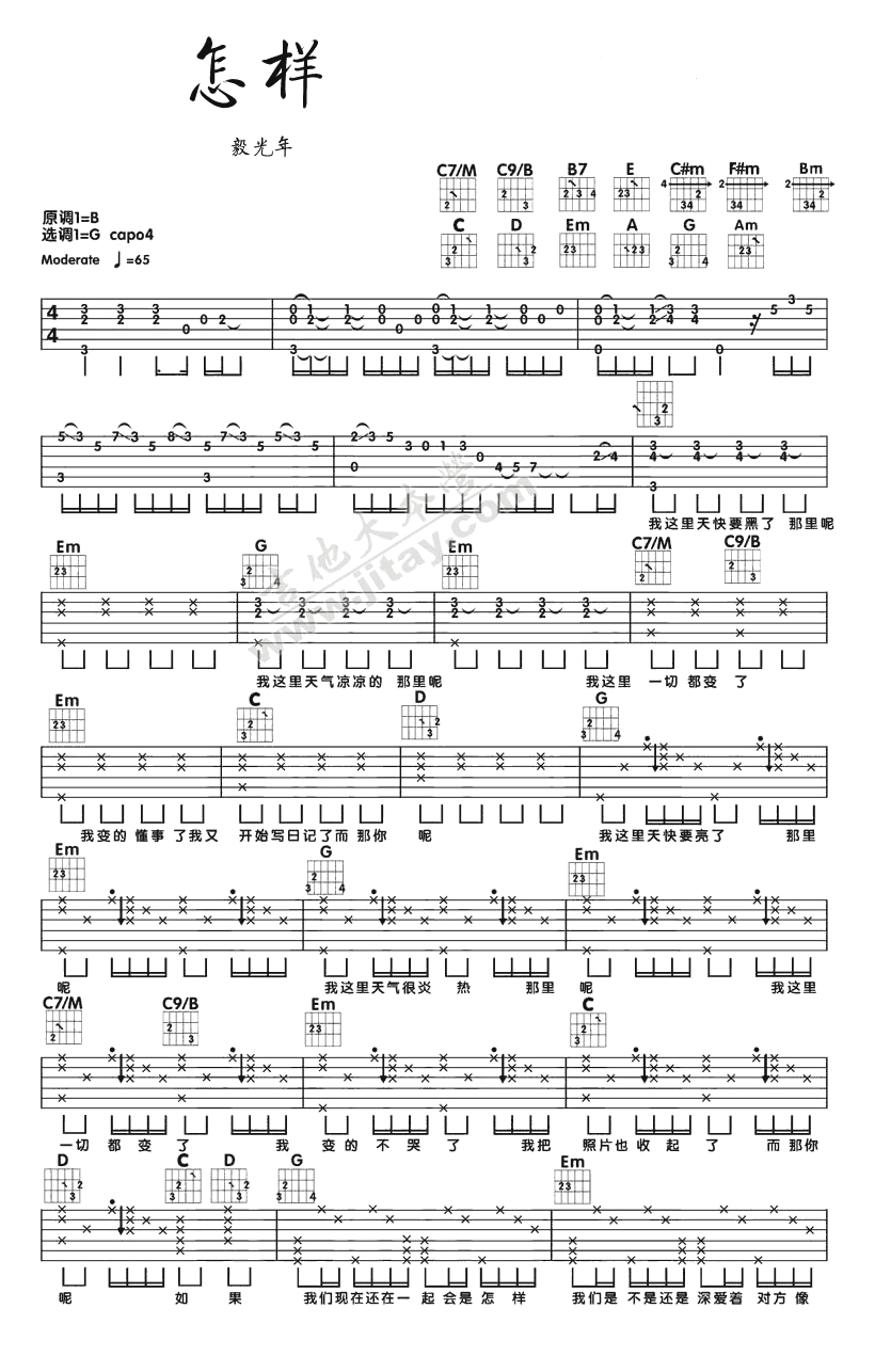 - 画吉他谱_邓紫棋《画》吉他演示视频_G调原版