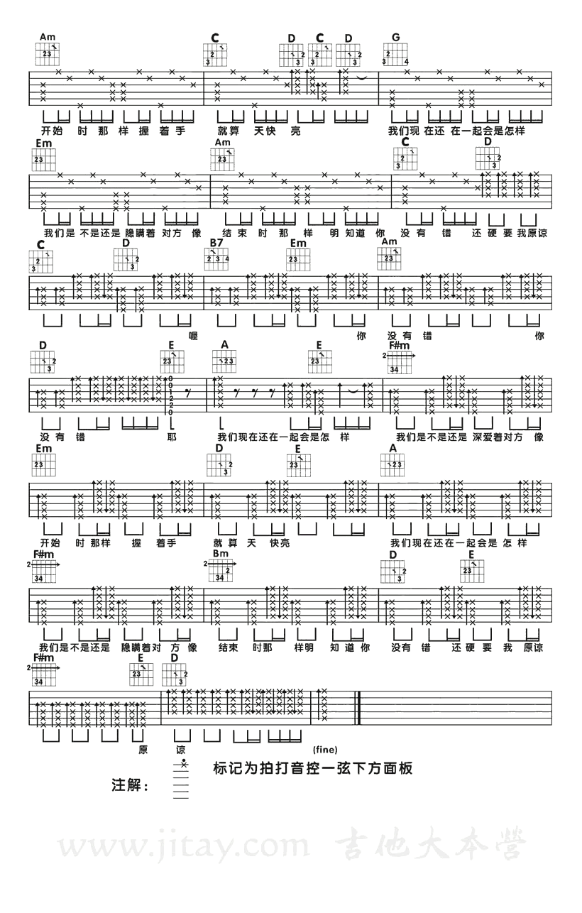 - 无名之辈吉他谱_陈雪燃_C调原版_弹唱六线谱