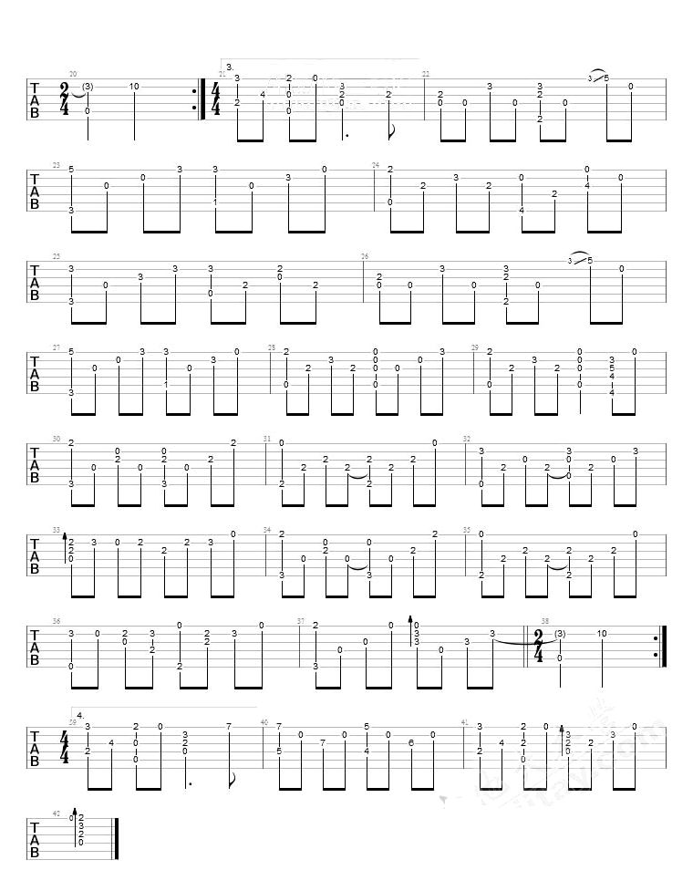 - way home吉他谱_高清图片谱_押尾桑指弹吉他