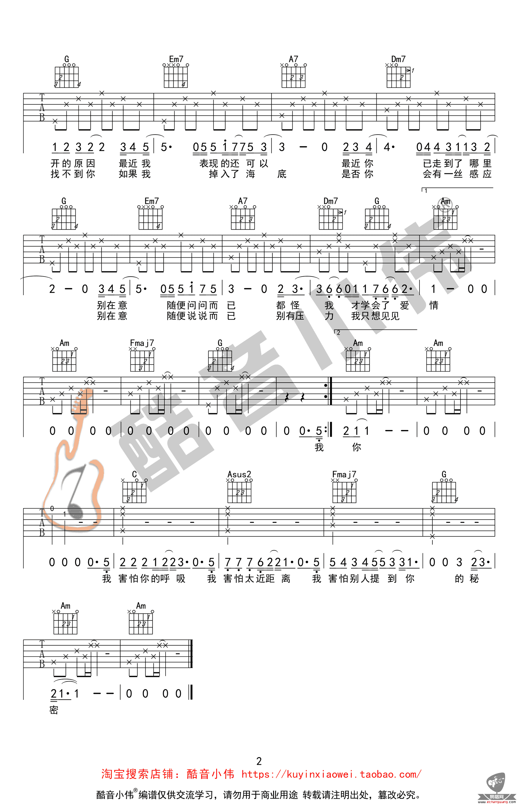 - 我害怕吉他谱 薛之谦 我害怕六线谱 C调弹唱谱