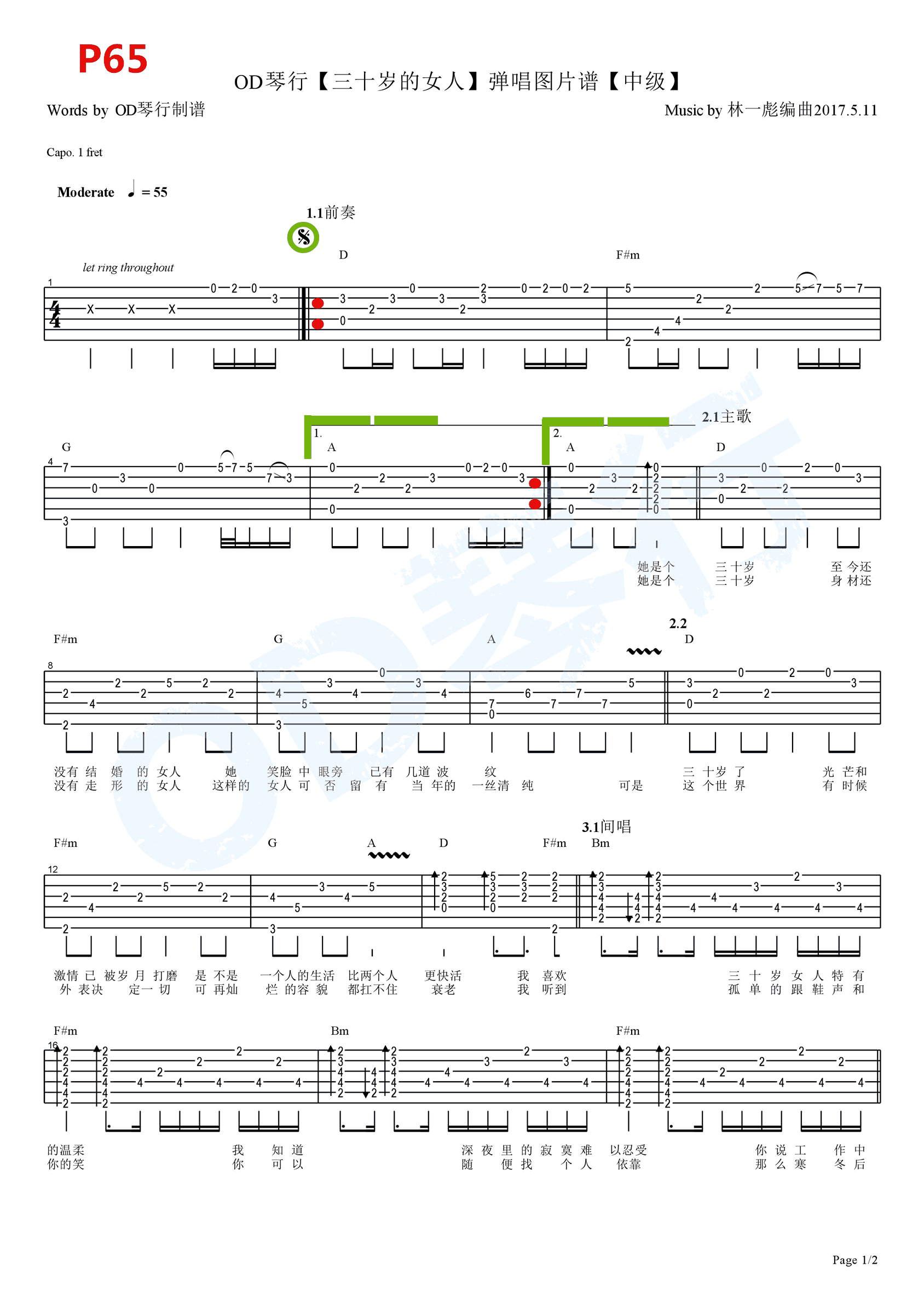 - 三十岁的女人吉他谱 赵雷 C调弹唱谱 吉他教学视频
