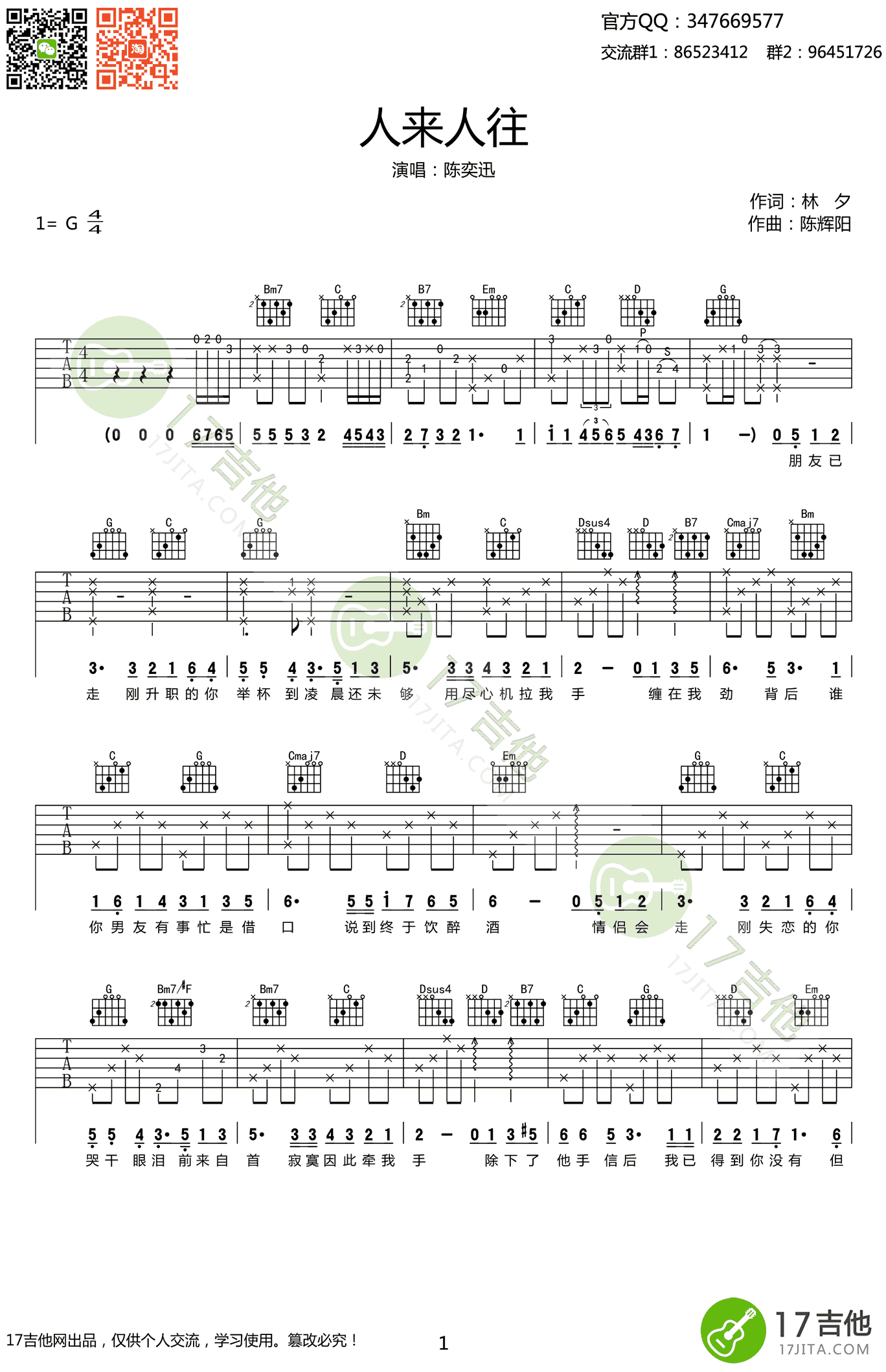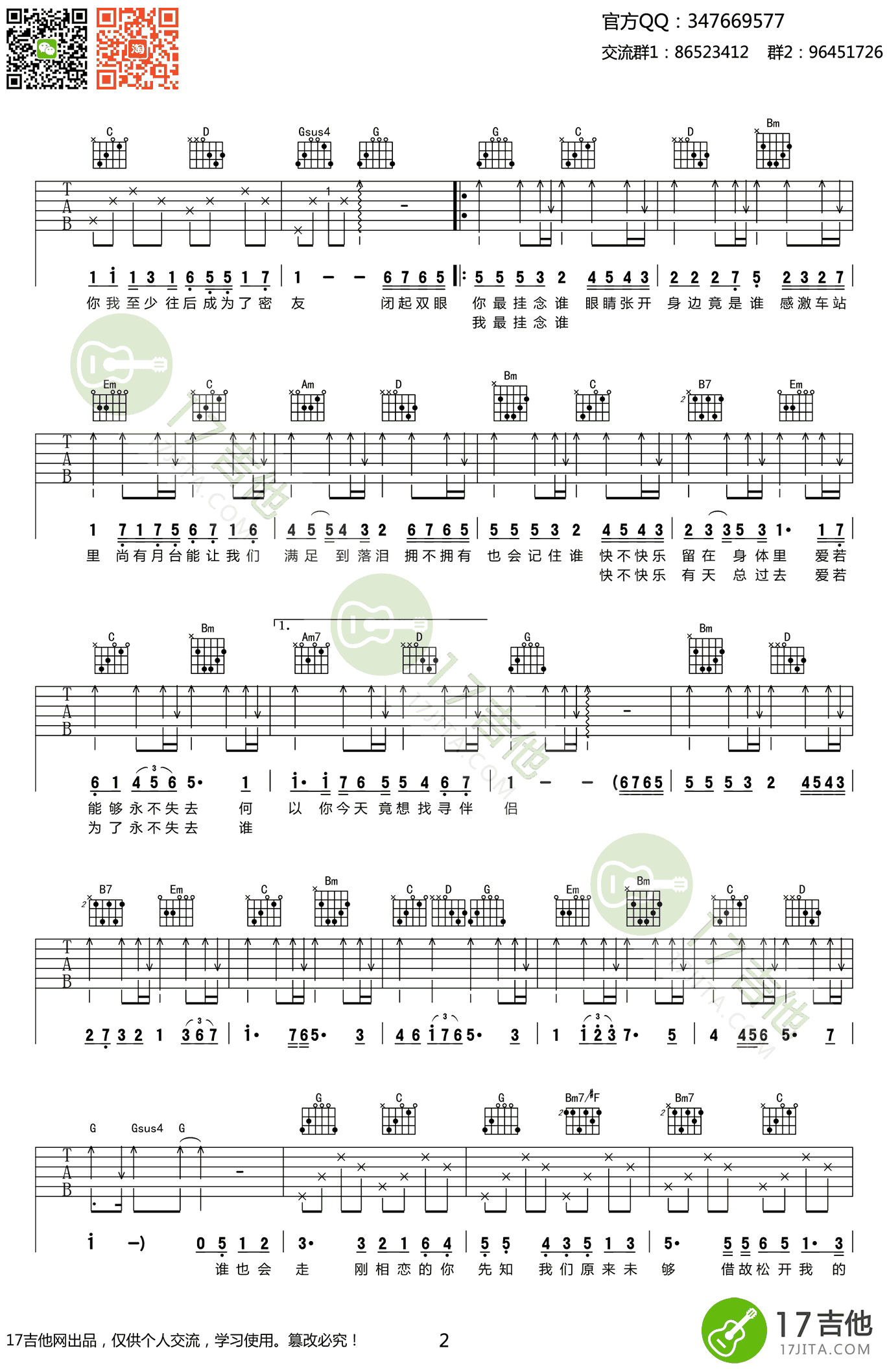 - 喜欢一个人吉他谱_陈奕迅_吉他弹唱谱