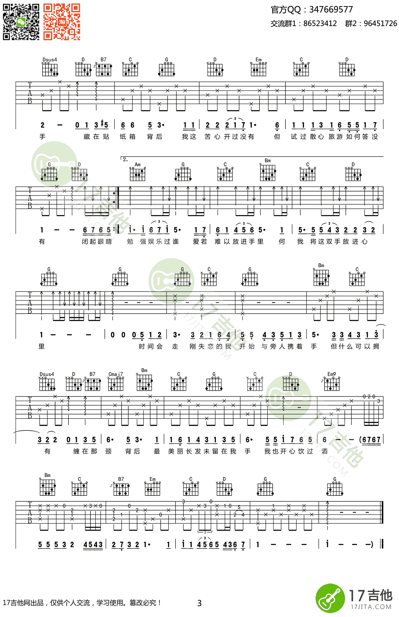 - 陈奕迅《不要说话》吉他谱_G调弹唱图片谱