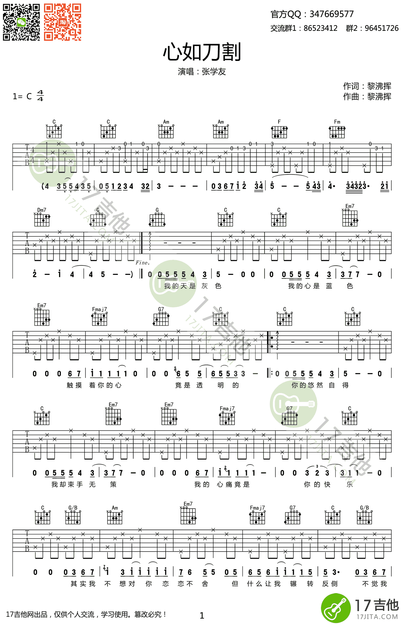 心如刀割 - 张学友 词:黎沸挥 曲:黎沸挥 我的天是灰色 我的心是蓝色 触摸着你的心 竟是透明的 你的悠然自得 我却束手无策 我的心痛 竟是你的快乐 其实我不想 对你恋恋不舍 但什么让我辗转反侧 不觉我说着说着 天就亮了 我的唇角尝到一种苦涩 我是真的为你哭了 你是真的随他走了 就在这一刻 全世界伤心角色 又多了我一个 我是真的为你爱了 你是真的跟他走了 能给的我全都给了 我都舍得 除了让你知道 我心如刀割 你的悠然自得 我却束手无策 我的心痛竟是你的快乐 其实我不想 对你恋恋不舍 但什么让我辗转反侧 不觉我说着说着 天就亮了 我的唇角尝到一种苦涩 我是真的为你哭了 你是真的随他走了 就在这一刻 全世界伤心角色 又多了我一个 我是真的为你爱了 你是真的跟他走了 能给的我全都给了 我都舍得 除了让你知道 我心如刀割