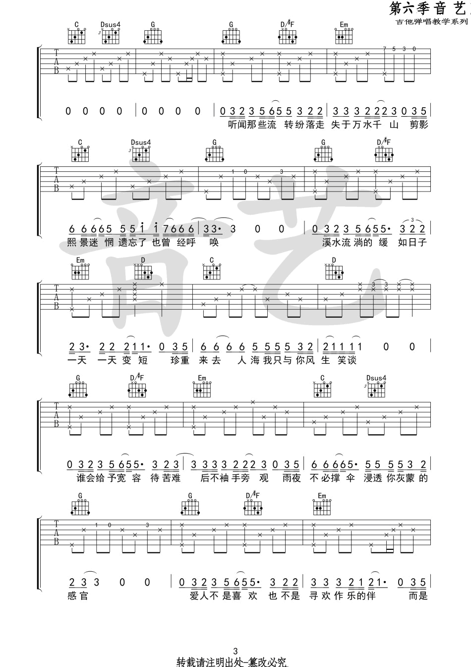 - 水星记吉他谱 郭顶 弹唱谱六线谱 吉他教学视频