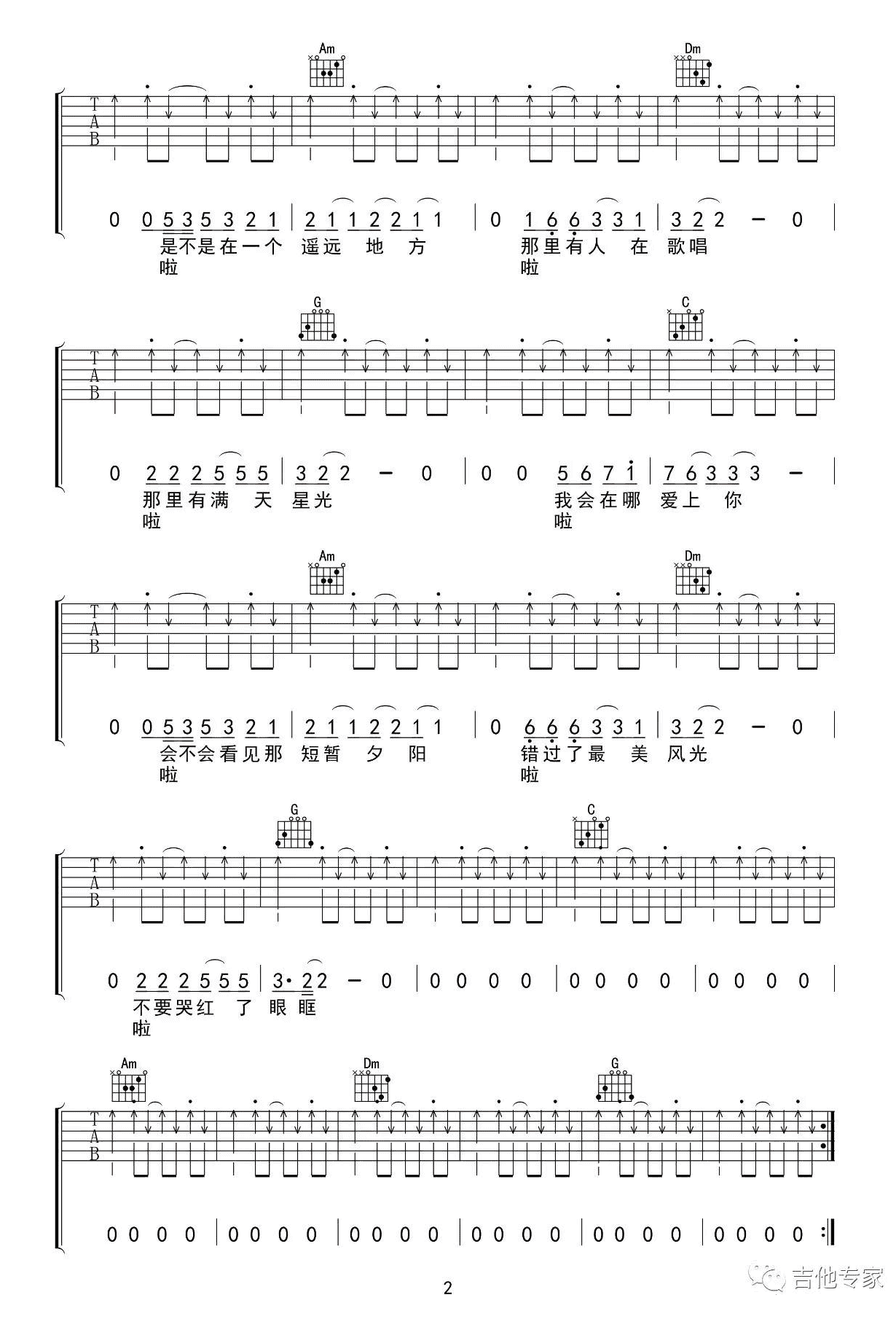 - 谢春花《荒岛》吉他谱 C调六线谱 高清弹唱谱