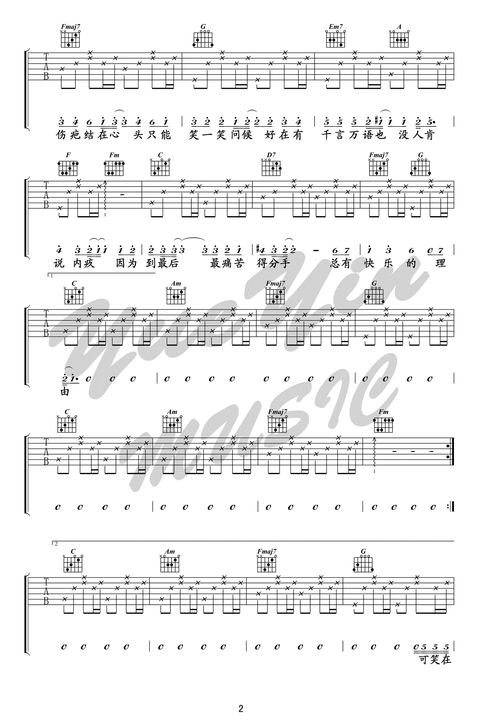 - 你快乐未必我快乐吉他谱 田馥甄 G调弹唱谱 图片谱