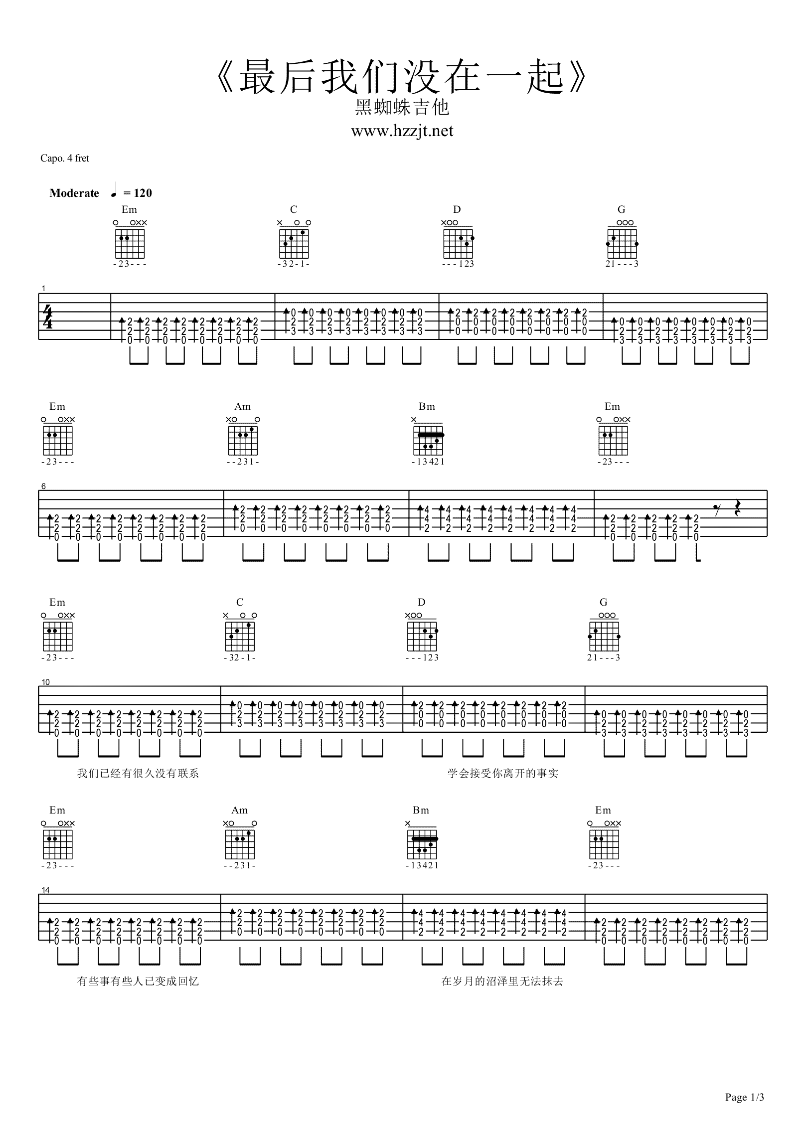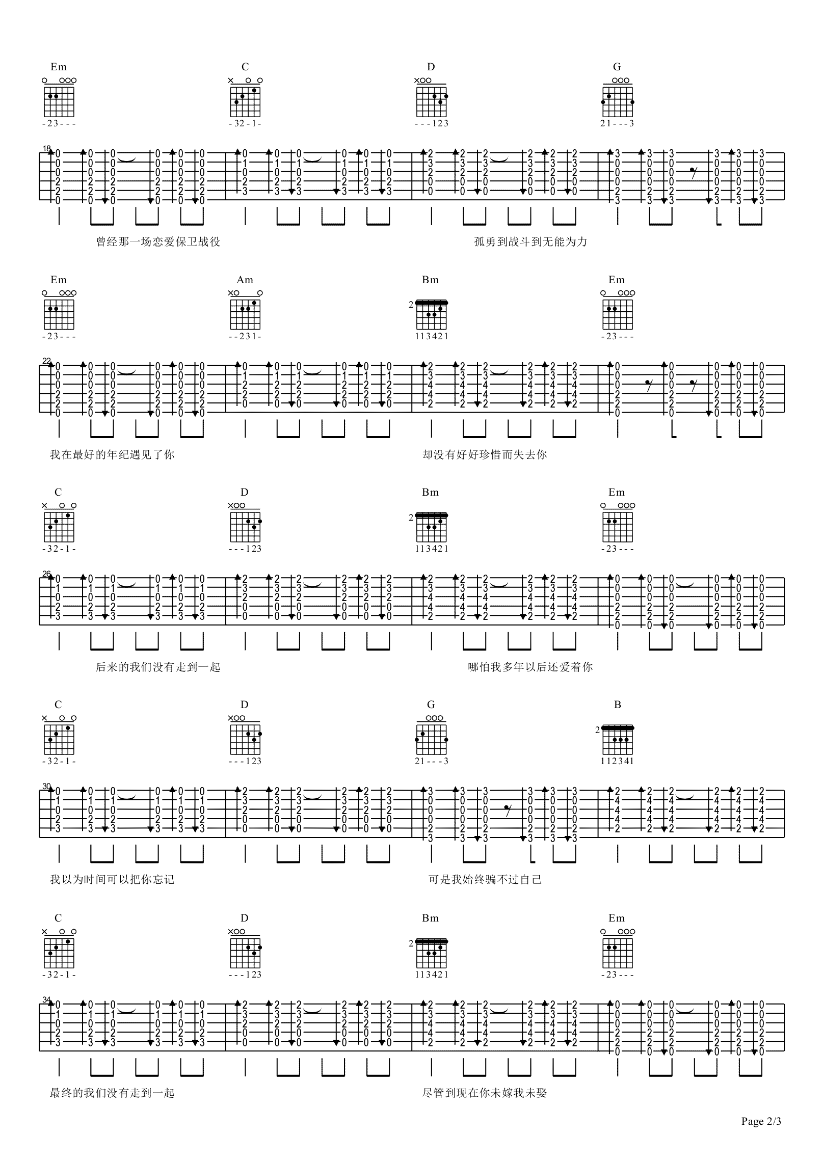 - 123我爱你吉他谱 新乐尘符 图片谱 吉他弹唱教学