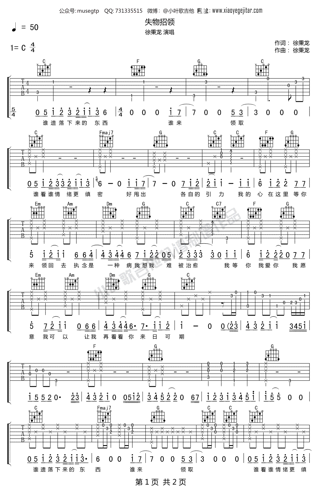 - 青柠吉他谱 徐秉龙VS桃十五《青柠》六线谱 高清弹唱谱