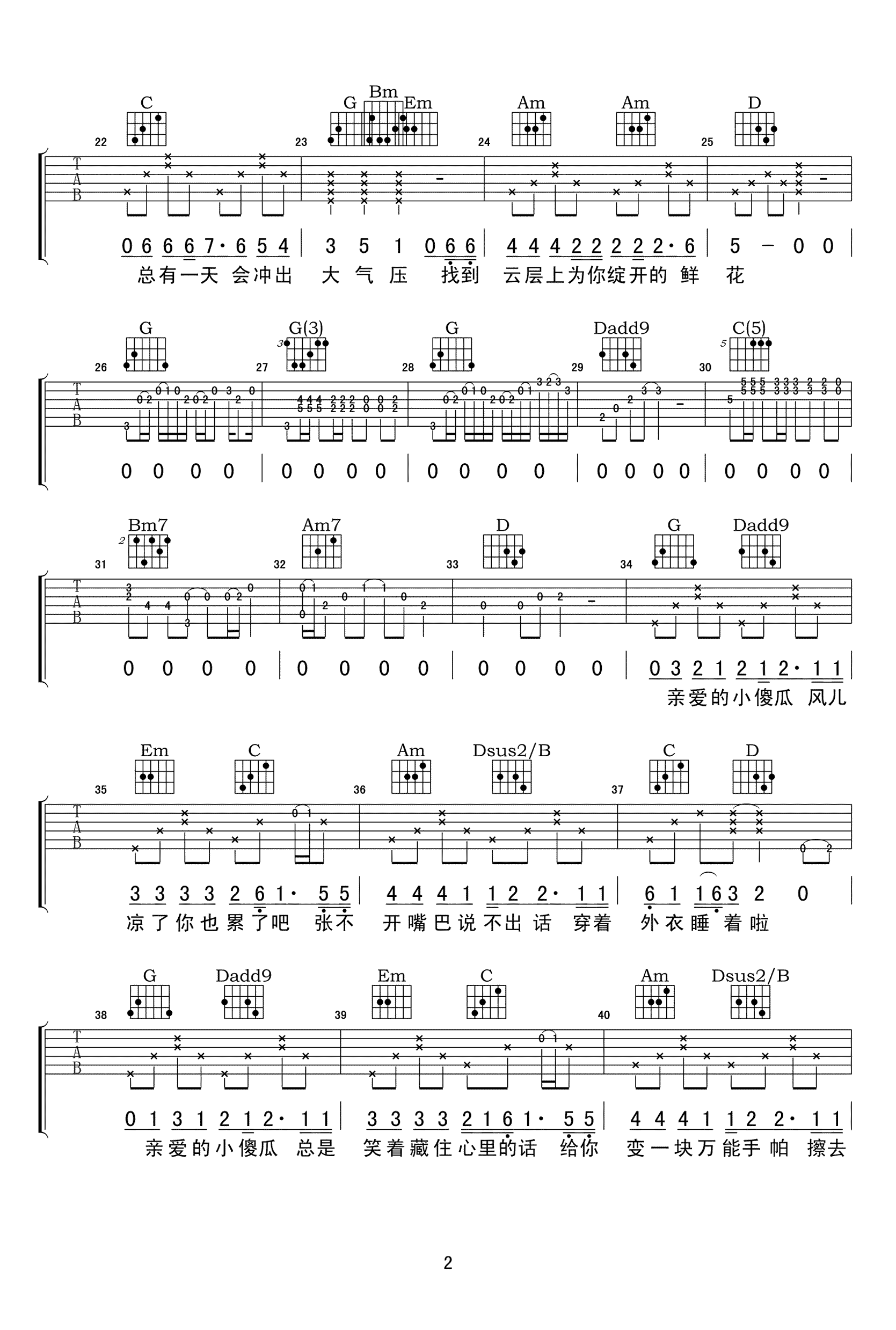 - 南方北方吉他谱 小闯 C调弹唱谱高清版 吉他教学视频