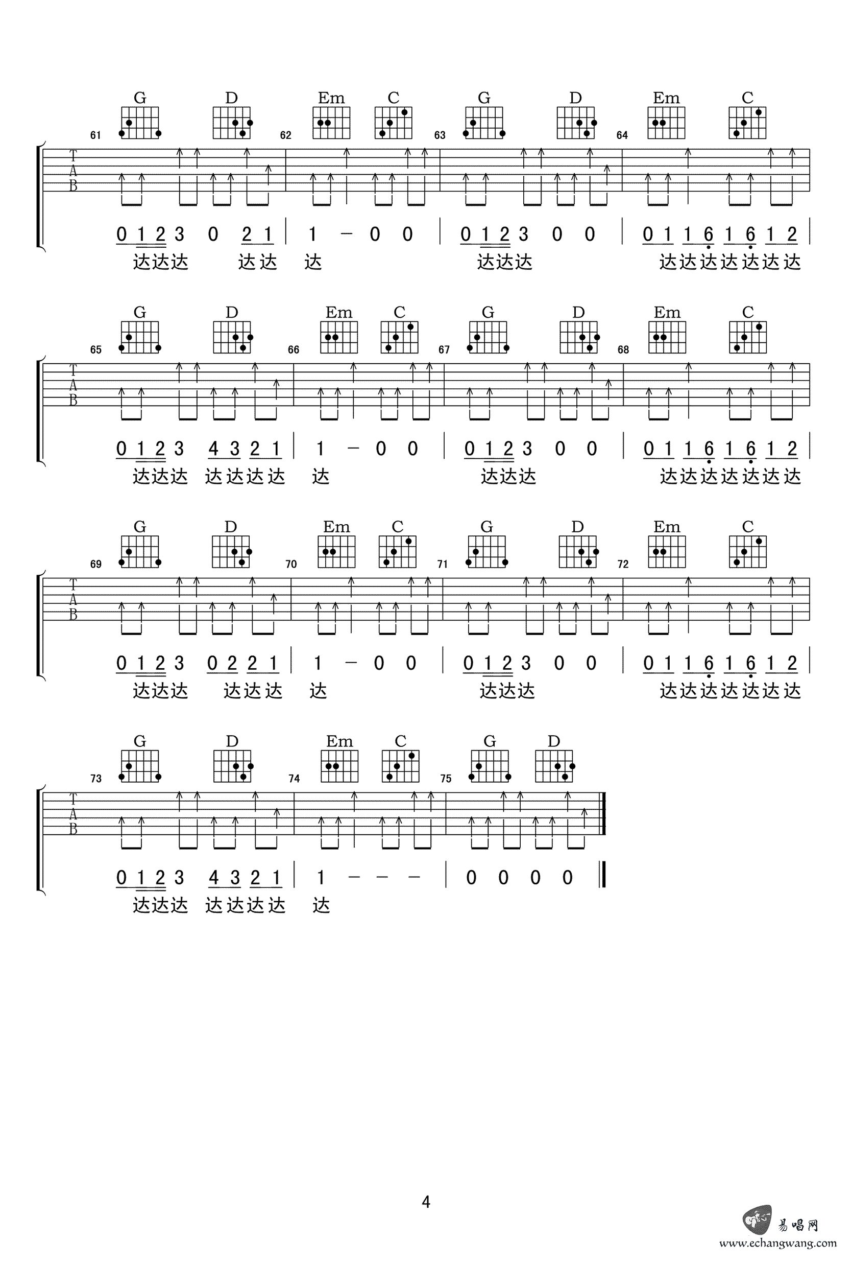 - 背包客吉他谱 大冰 C调弹唱谱 高清图片谱