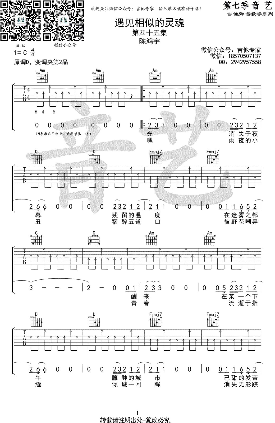 - 陈鸿宇《一如年少模样》吉他谱_完美弹唱谱