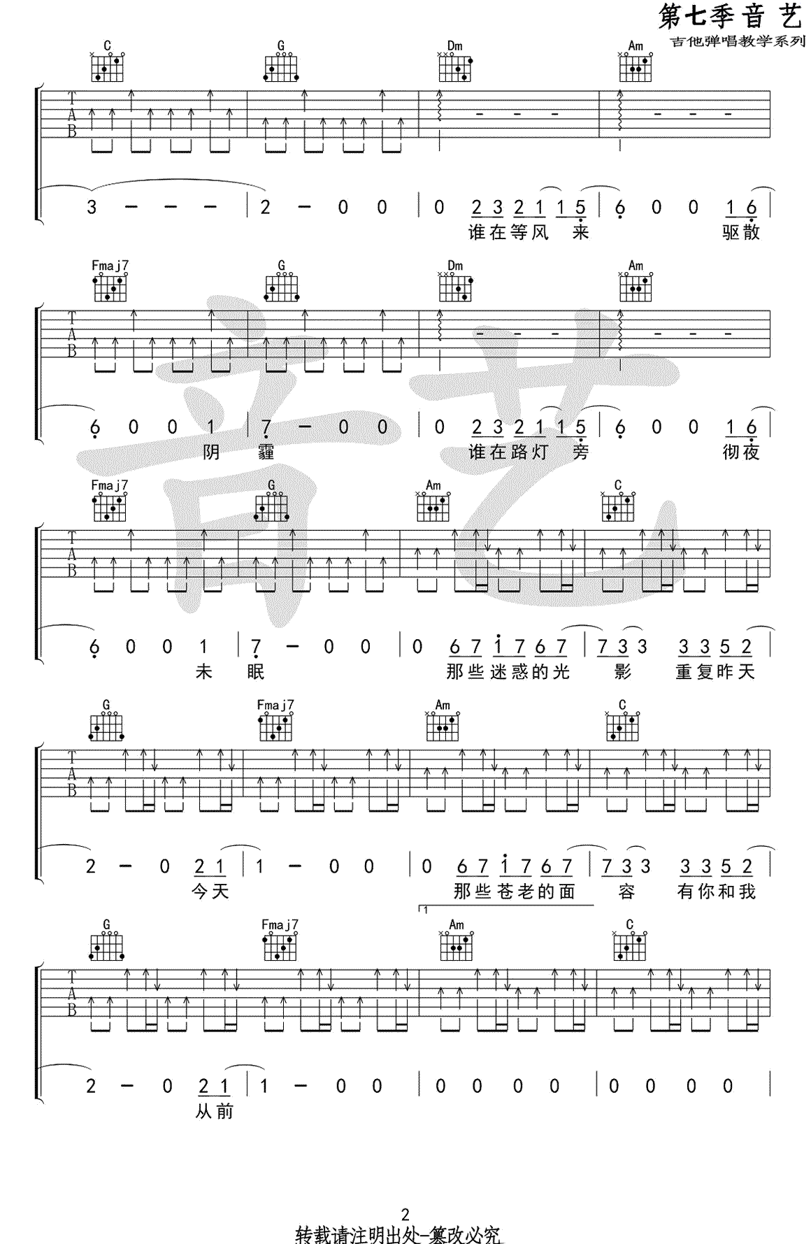 - 早春的树吉他谱_陈鸿宇_C调弹唱谱_民谣歌曲